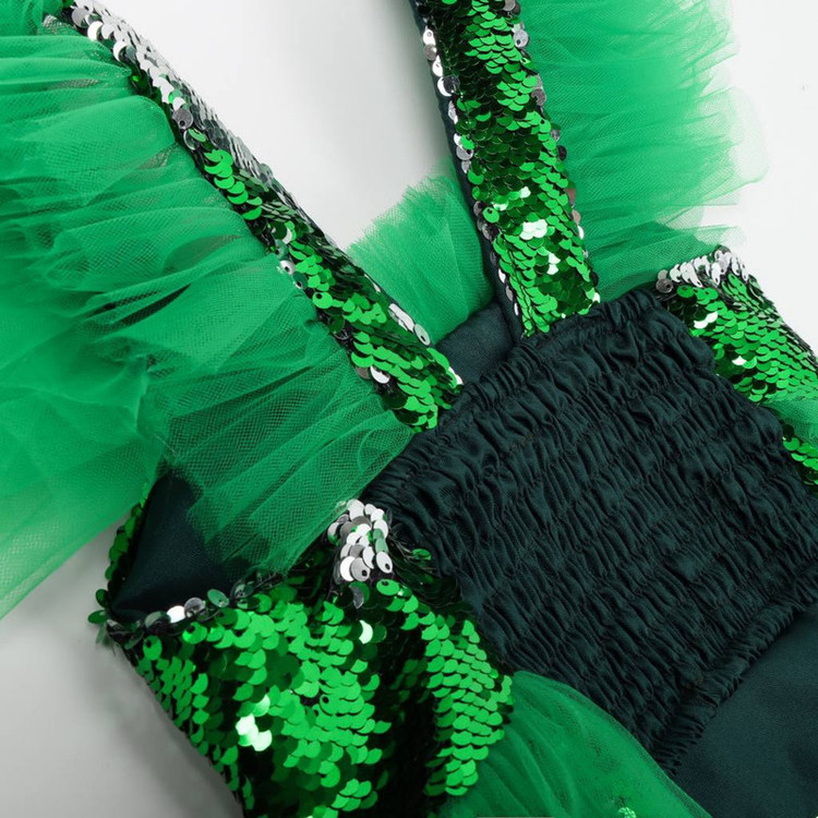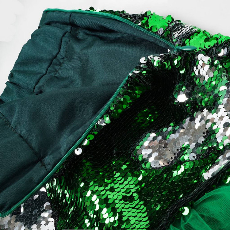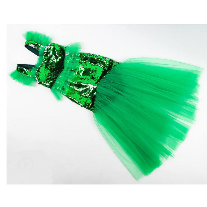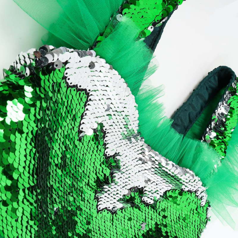 جنس تاپ پولک دو طرفه و جنس دامن پولک دوطرفه و تور ، لباس تمامن با پارچه تافته آستر دوزی شده است.