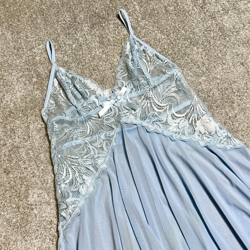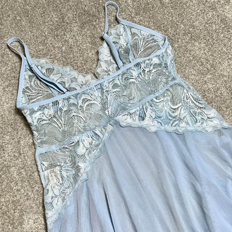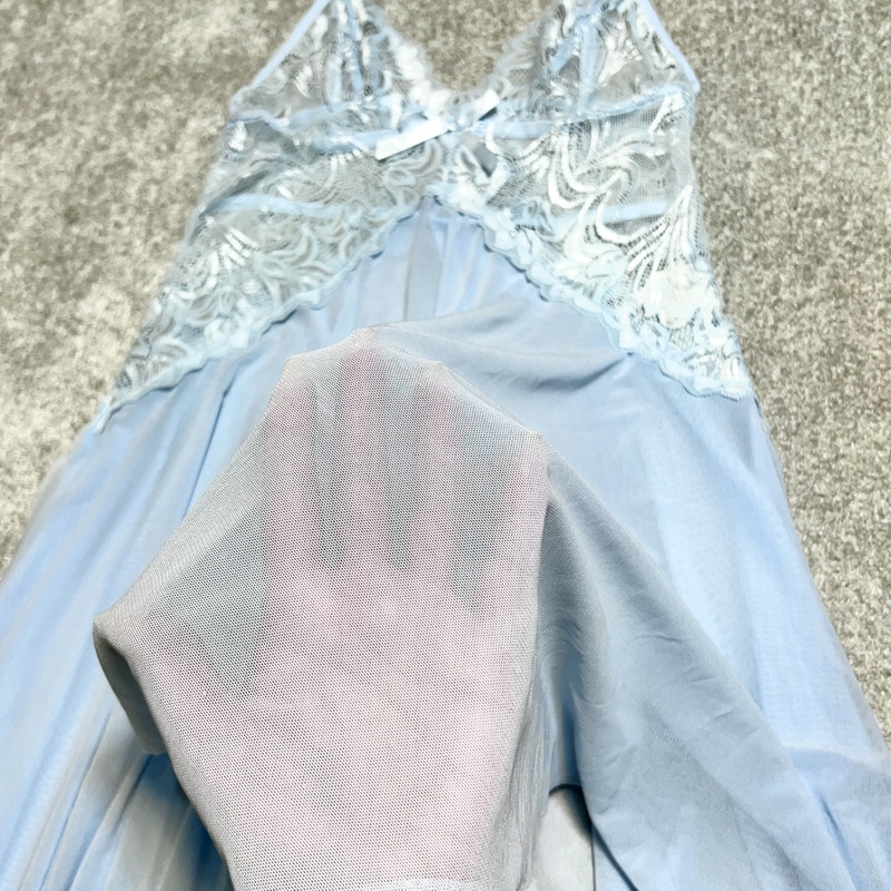 نحوه بسته شدنسادهمدل یقهبازنوع آستینبدون آستینجنسحریر , گیپورطرحسادهمدل لباس خوابپیراهنسایزآبی روشن - 34-36