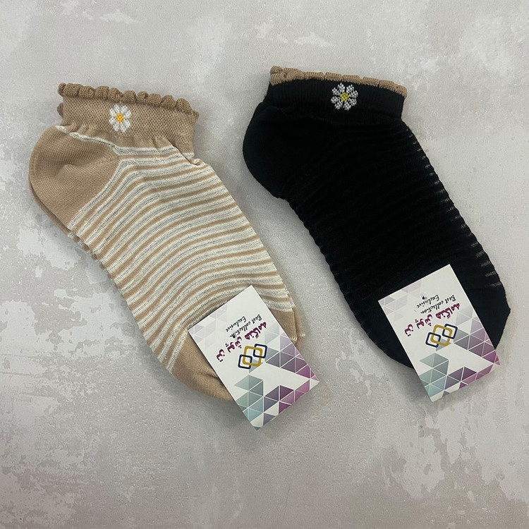 جوراب زنانه تن پوش هنگامه مدل شیشه ای راه راه بابونه بسته 2 عددی