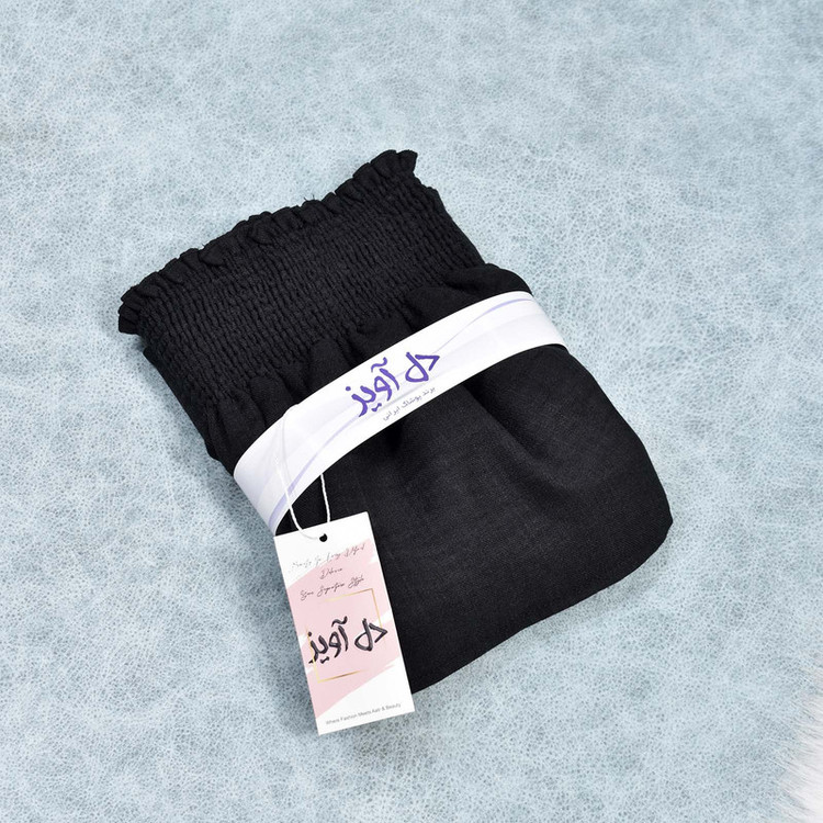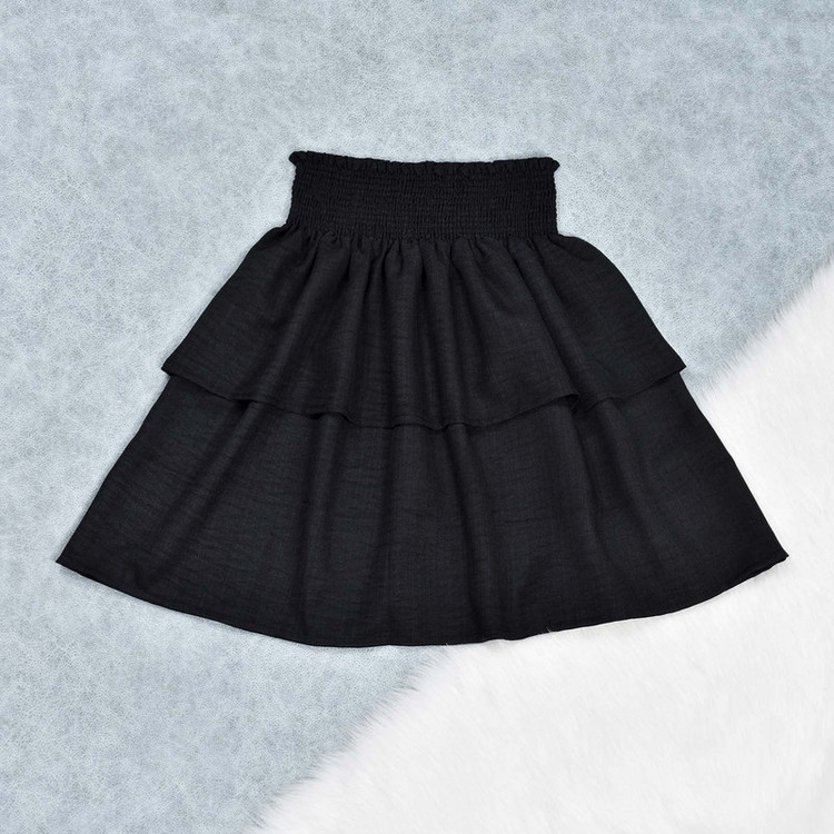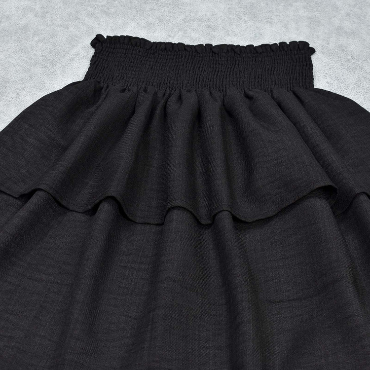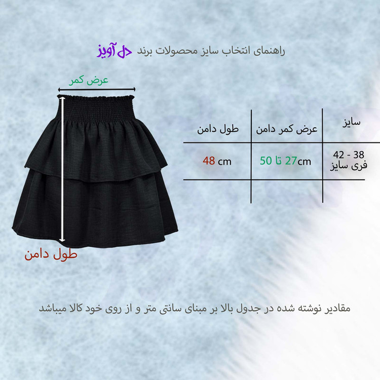 دامن کمر کشدوزی عریض مدل دوطبقه چین دار به رنگ مشکی با طول ۴۸ سانتی متر