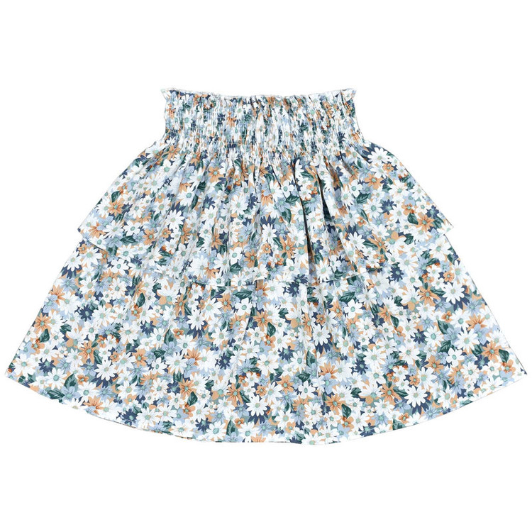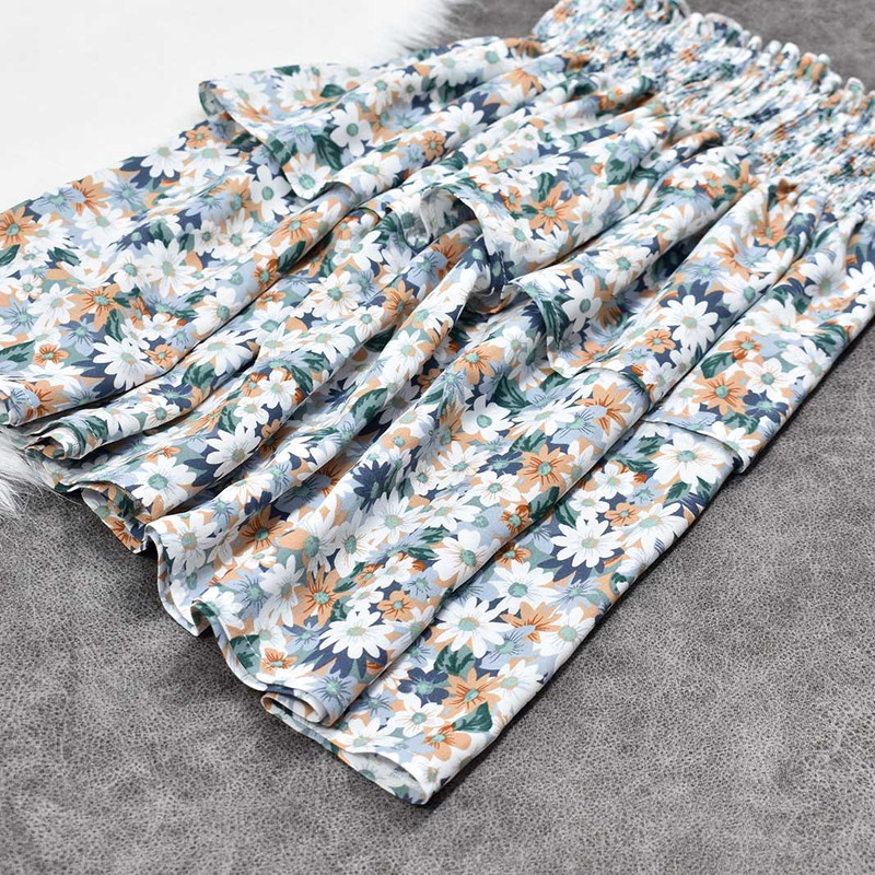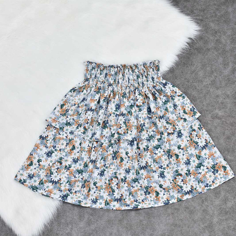 دامن نخی کمر کشدوزی عریض با مدل دو طبقه و طرح زمینه گل ریز