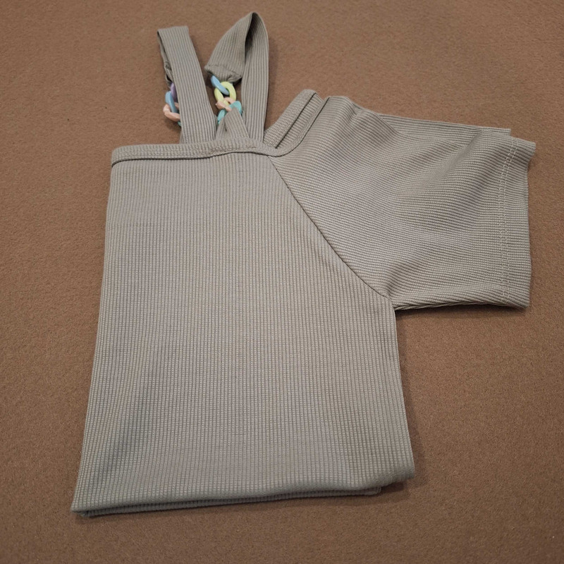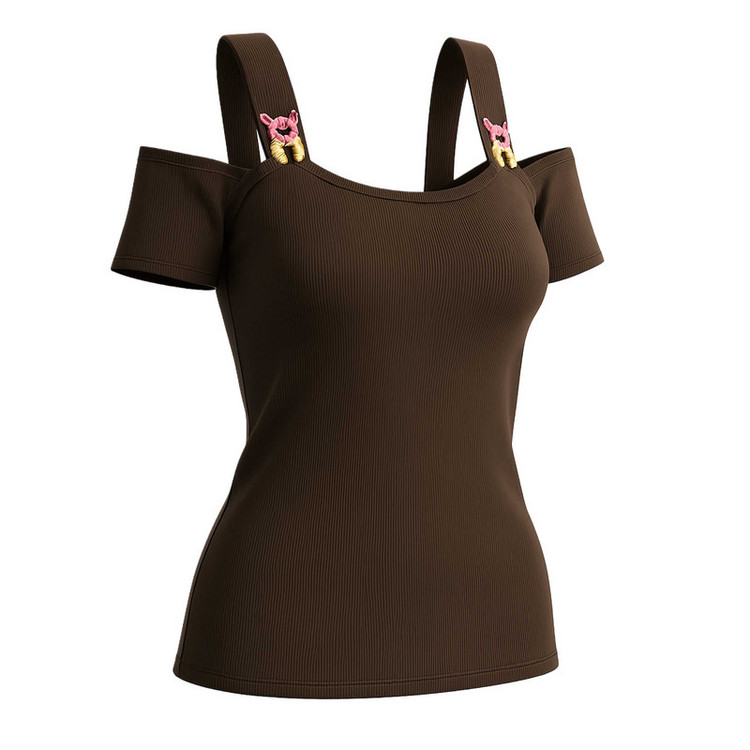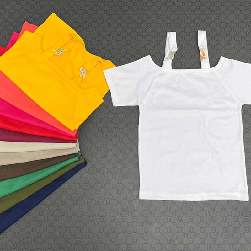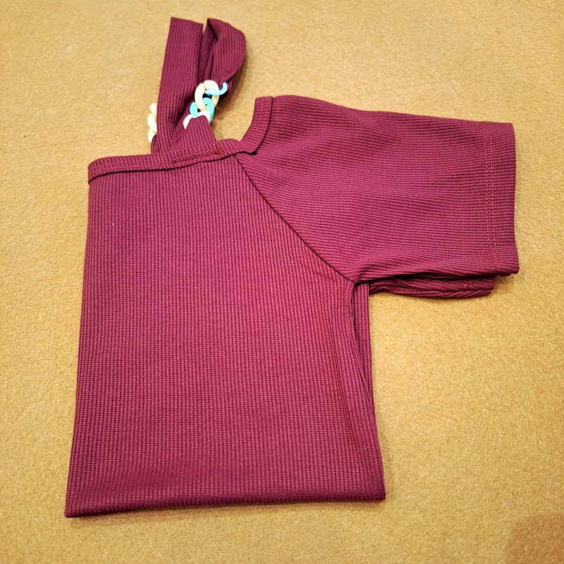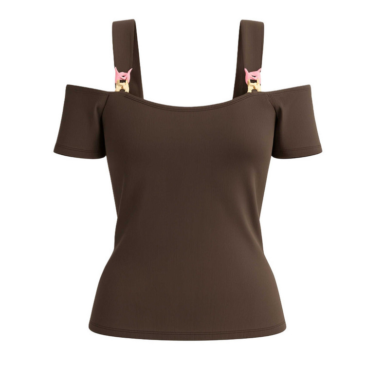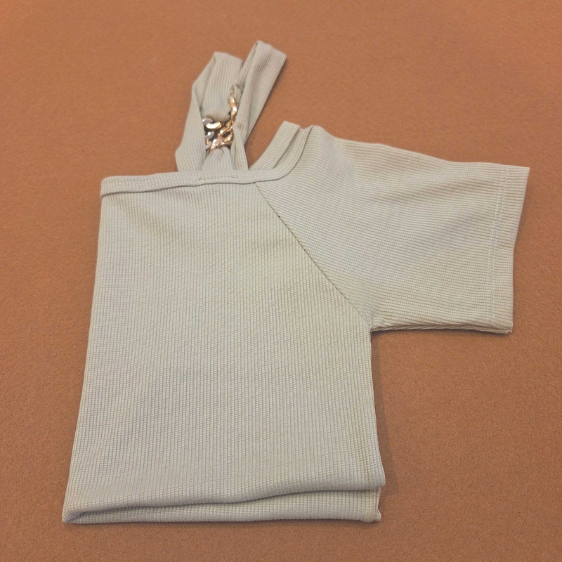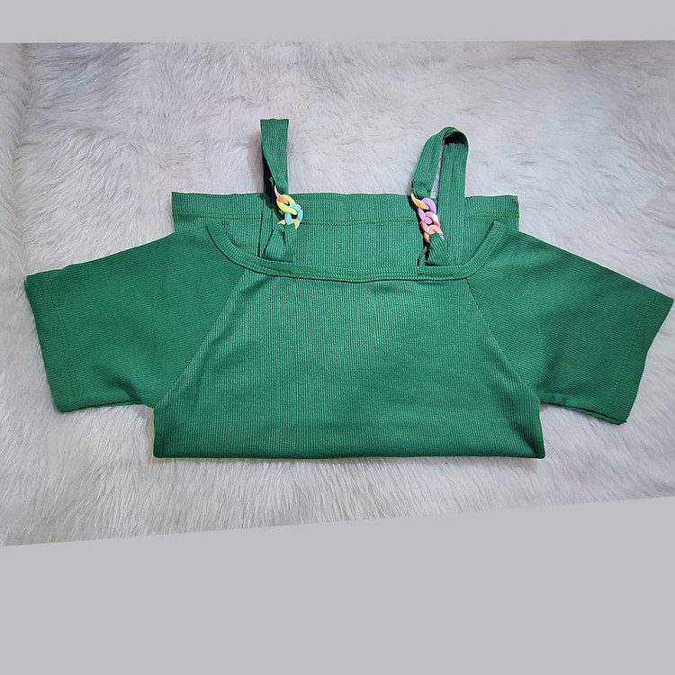 کراپ‌تاپ زنانه مدل کبریتی طرح سرشانه زنجیر پاستیلی