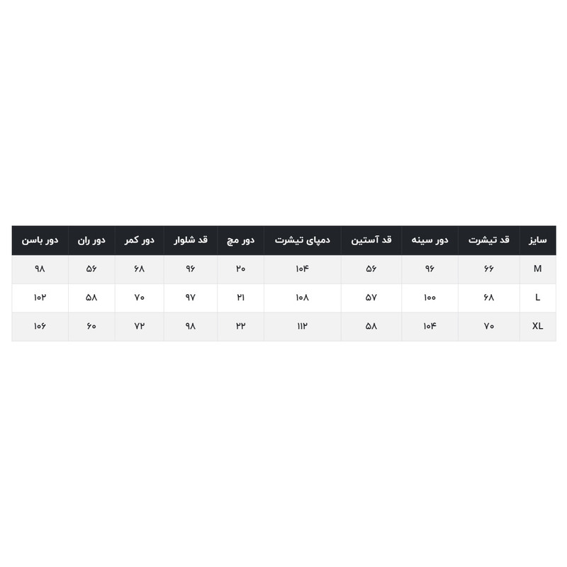 جزئیات : - ابعاد لباس برای سایز L :