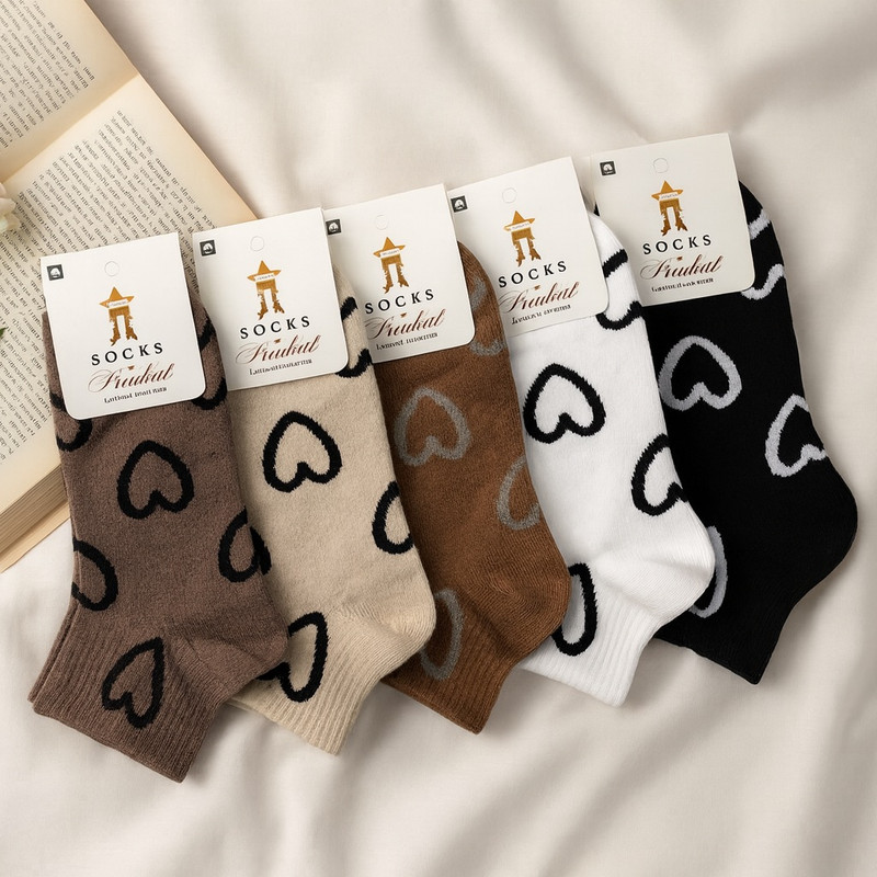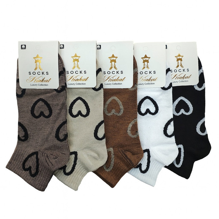 جوراب ساق کوتاه زنانه کیاکت مدل قلب قلبی نود بسته 5 عددی