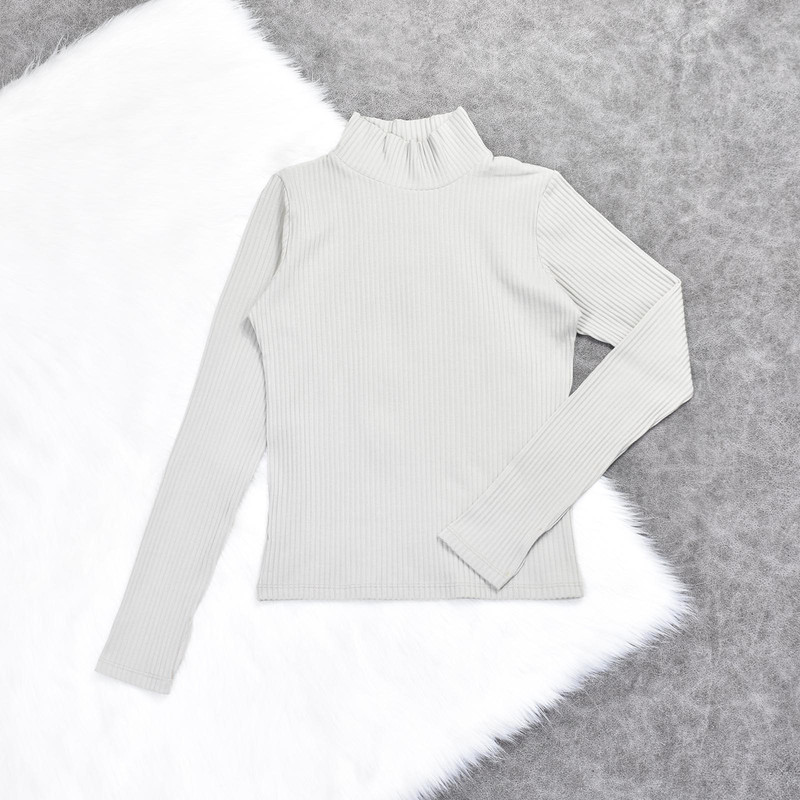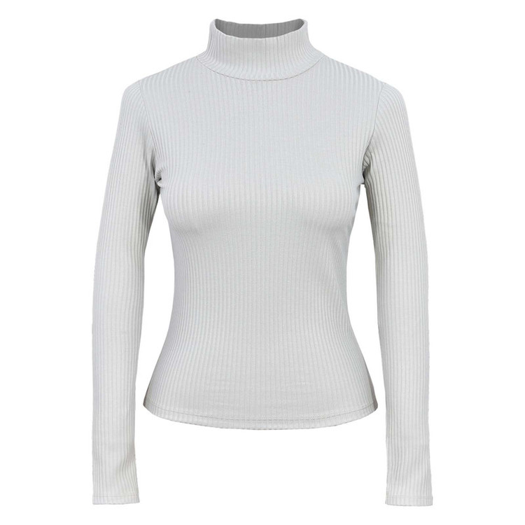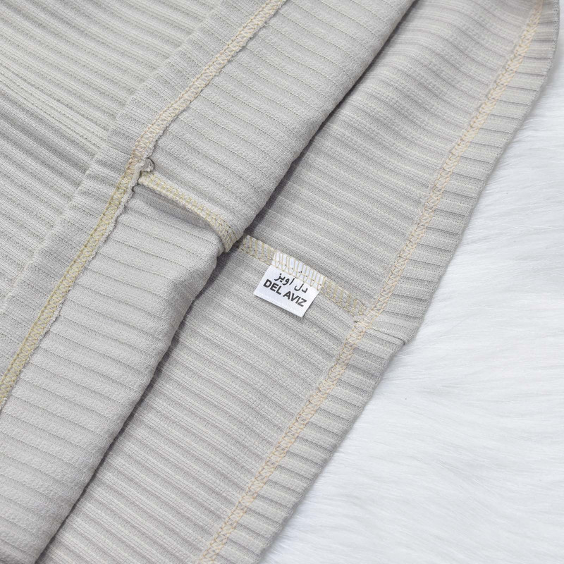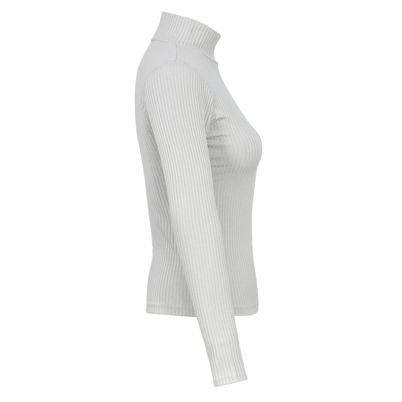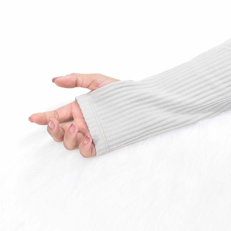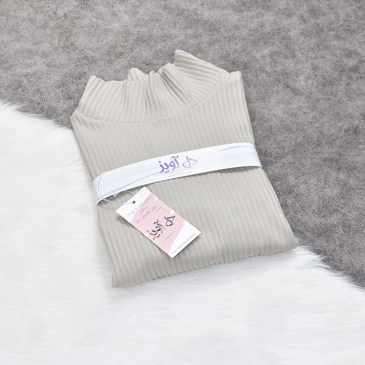 بلوز یقه اسکی آستین بلند زنانه بافت راه راه با سرآستین طرح انگشتی به رنگ کرم