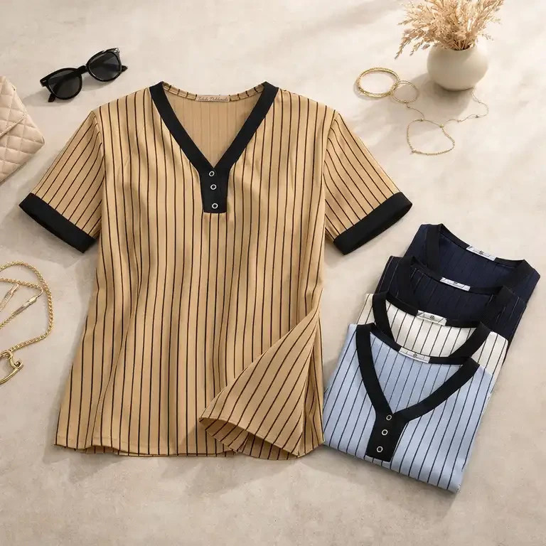 بلوز آستین کوتاه یقه هفت زنانه مدل ژینوس کد 06