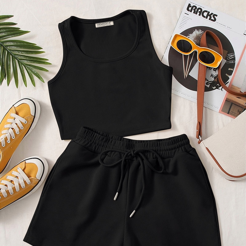 نشان برند ARMADIYA در کناره داخلی کالا | جنس: کشی کبریتی | مدل: ست کراپ تاپ و شلوارک کبریتی | سایز: دارای تنوع سایز (راهنمای سایز در تصاویر محصول)