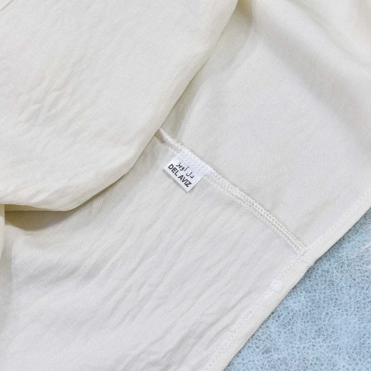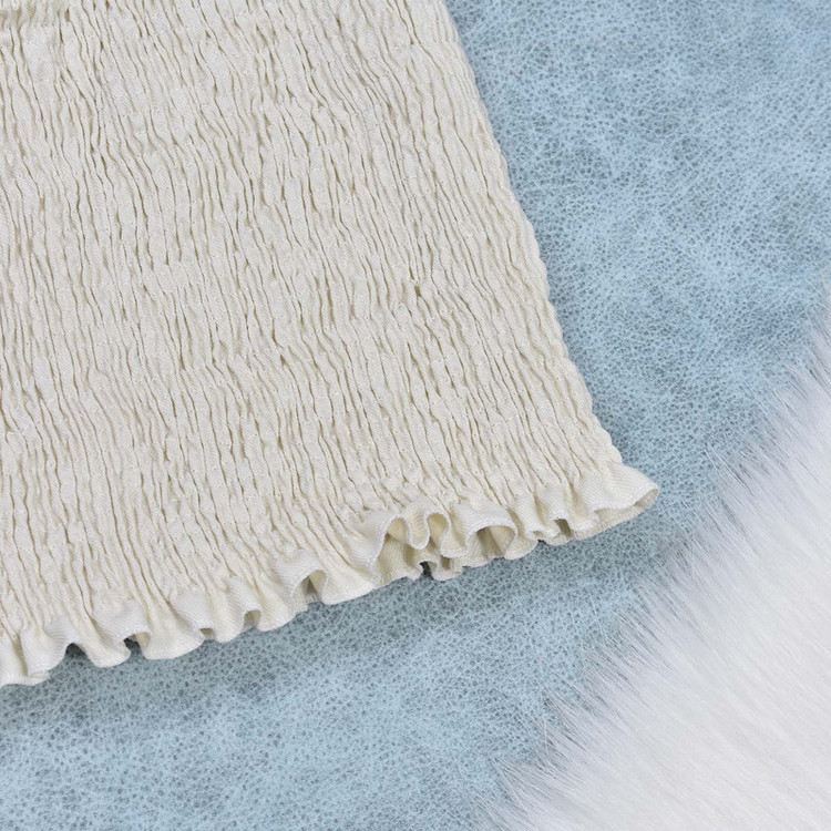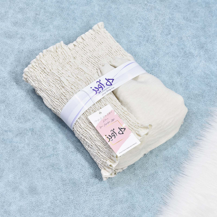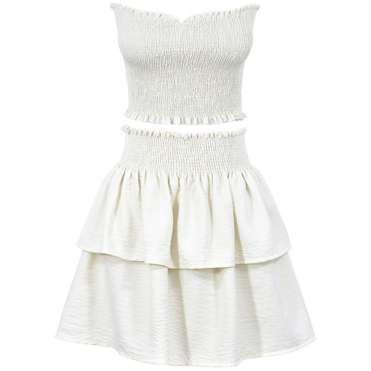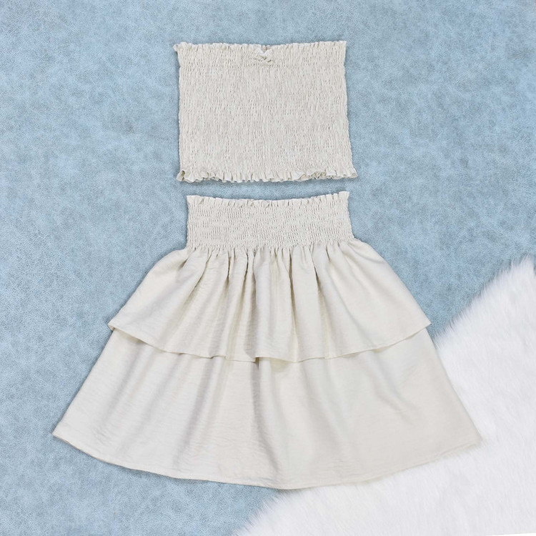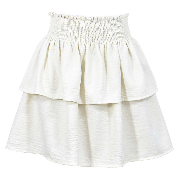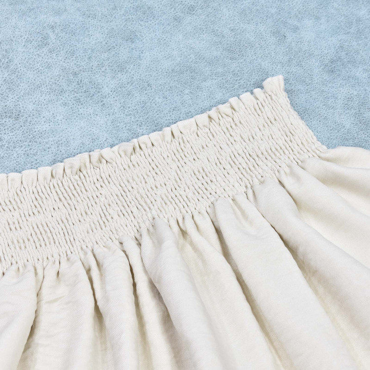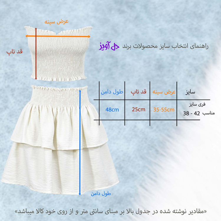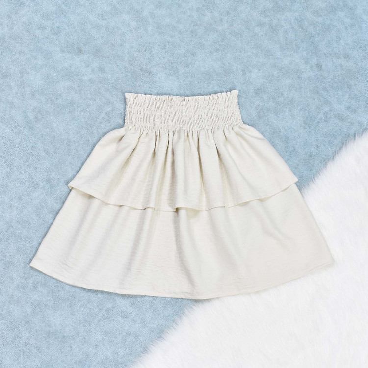 ست نیم تنه و دامن ابر و بادی کشدوزی عریض مدل دوطبقه چین دار به رنگ کرم، مناسب سایزهای ۳۸ تا ۴۲
