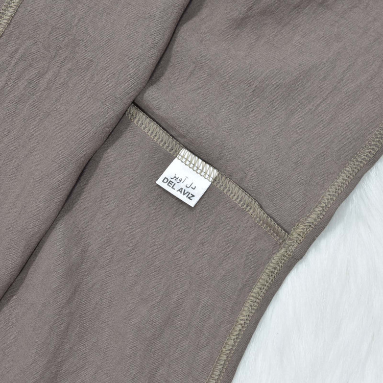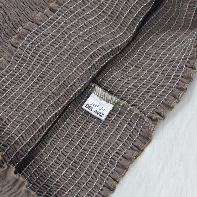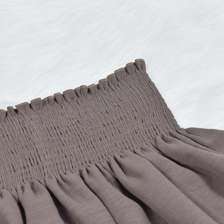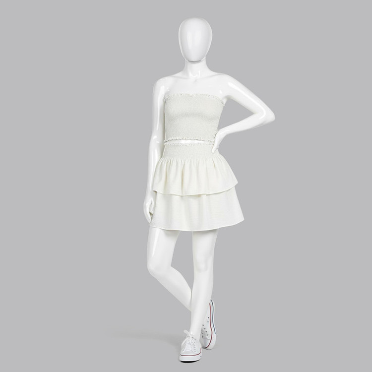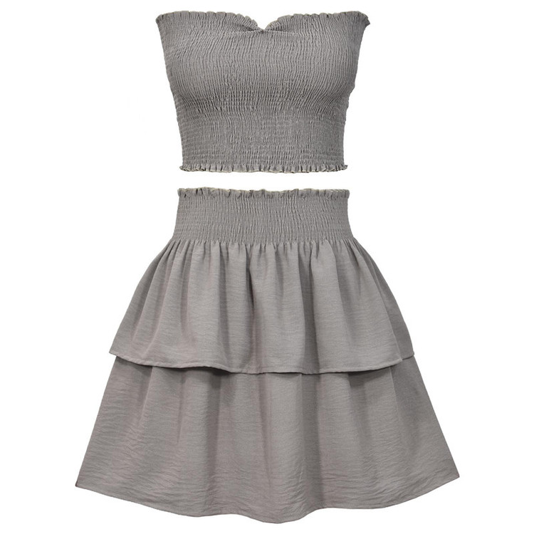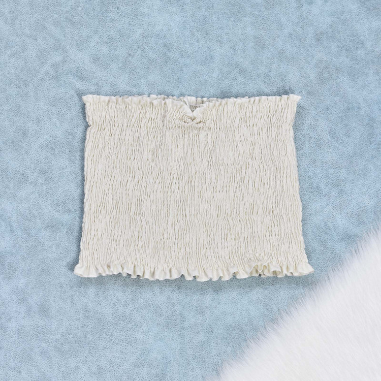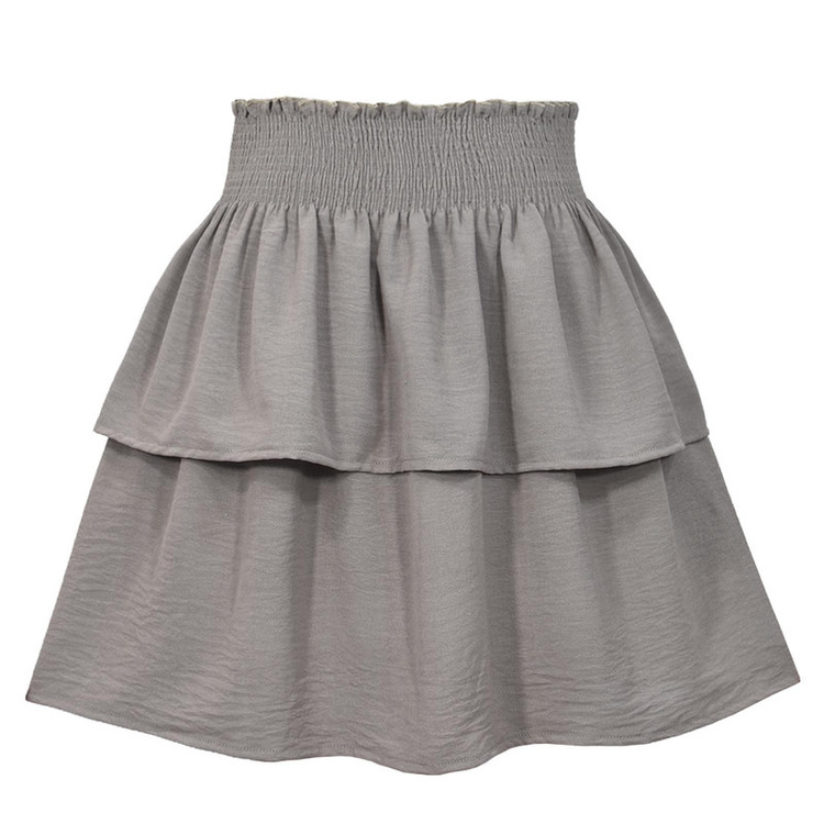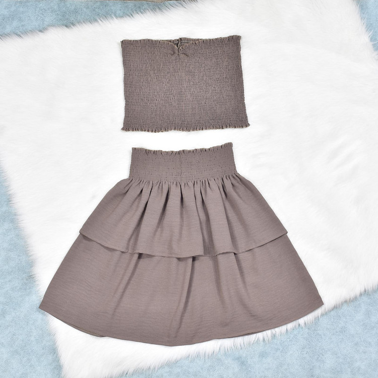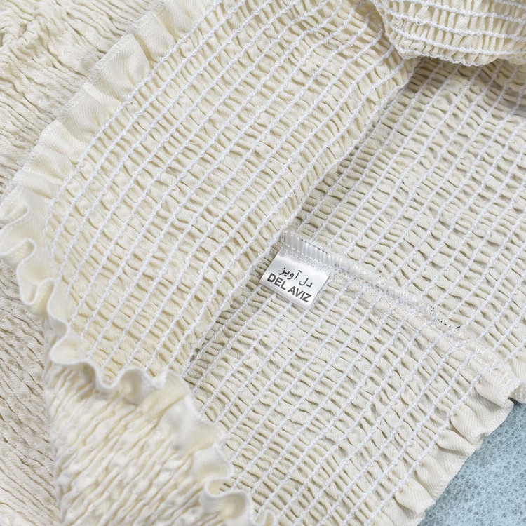 ست نیم تنه و دامن ابر و بادی کشدوزی عریض مدل دوطبقه چین دار به رنگ کرم، مناسب سایزهای ۳۸ تا ۴۲