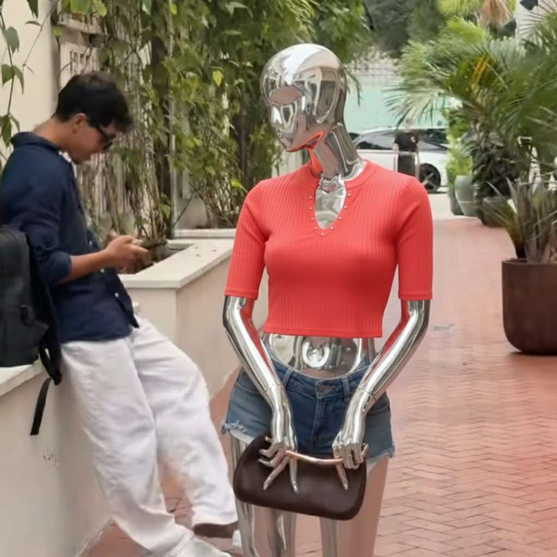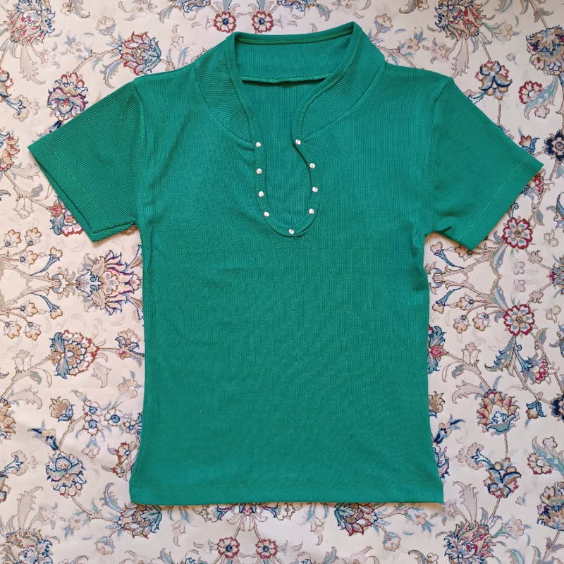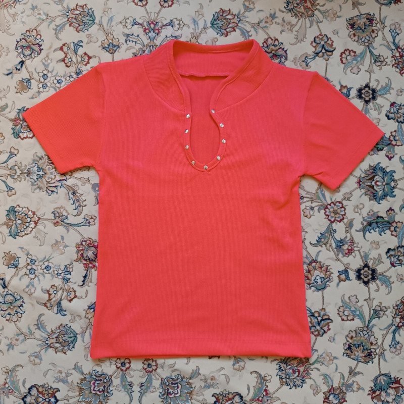 کراپ بلوز آستین کوتاه یقه ایستاده زنانه مدل Aztec