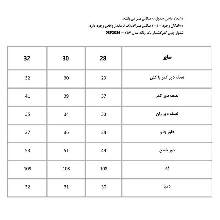 استایل نیم بگ پشت کمر کش دار / فاق متوسط - بلند/ دمپا گشاد/ ضخامت متوسط / صد در صد جین بدون کش / سایزبندی شلوار جین اینچی می باشد لطفا به جدول اندازه دقت فرمایید.