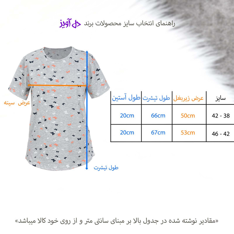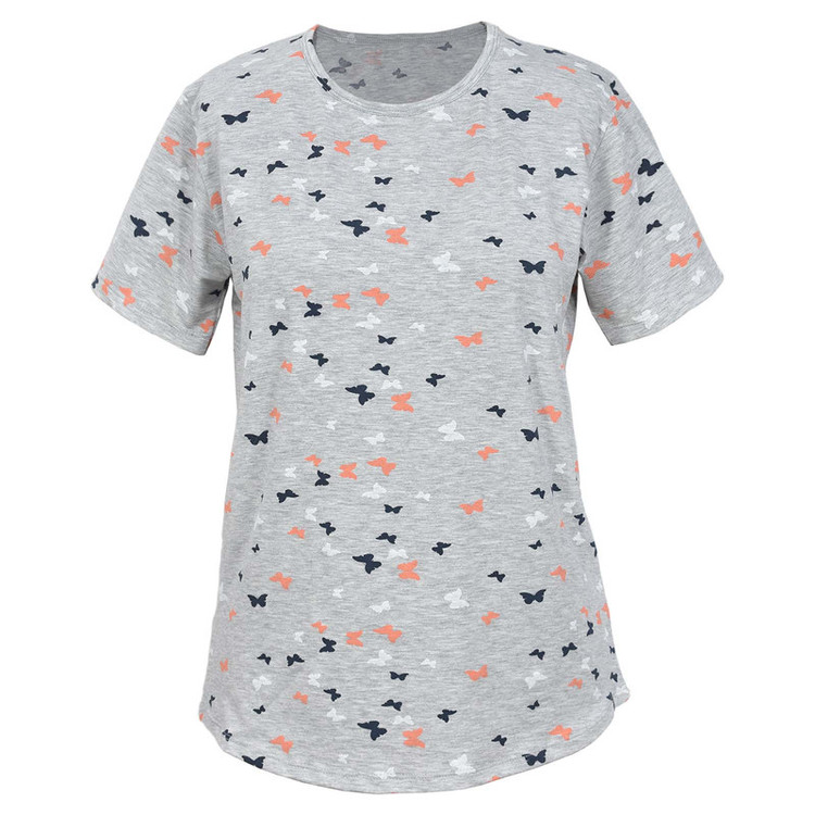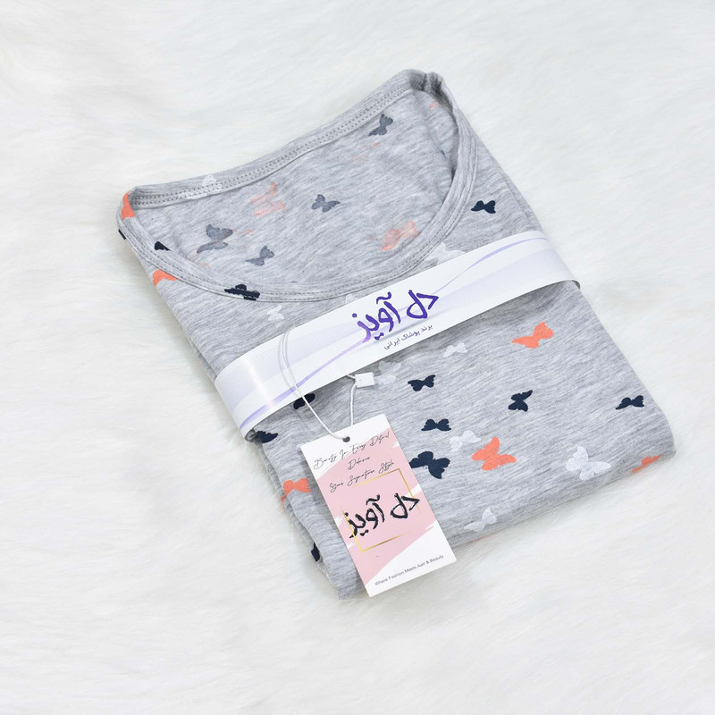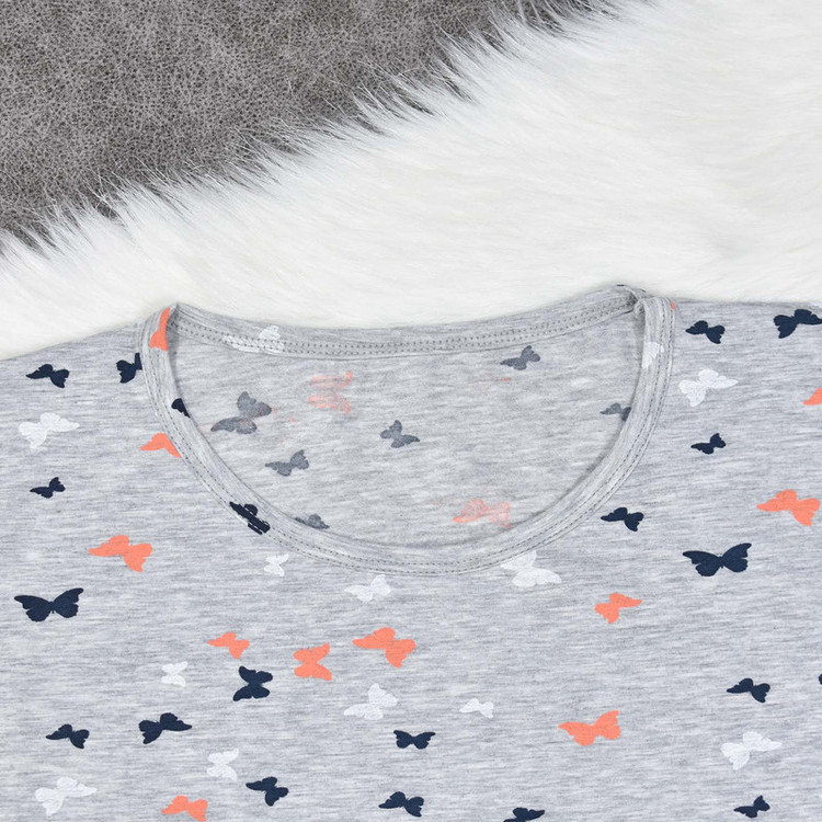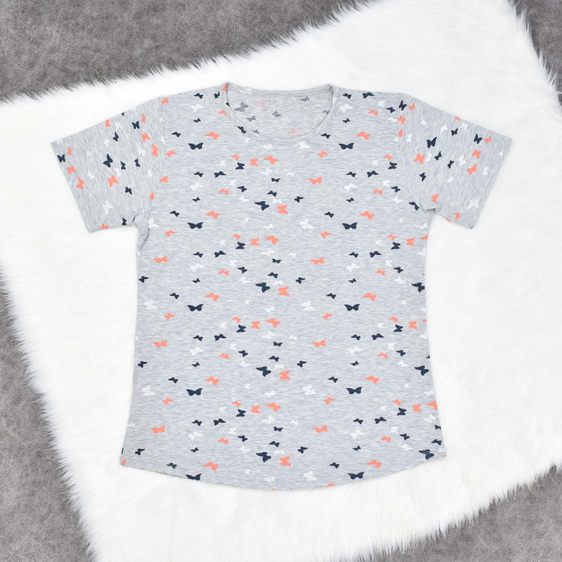 تیشرت آستین کوتاه به رنگ طوسی و با طرح پروانه ای