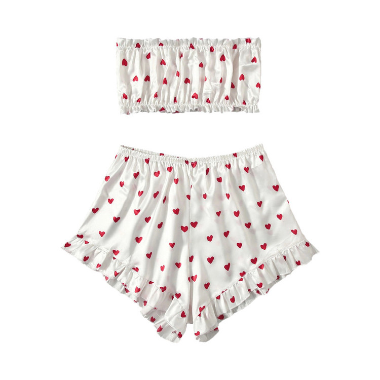 -ست لباس خواب زنانه شامل شلوارک ساتن و نیم تنه ساتن