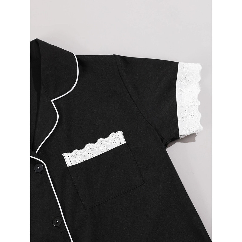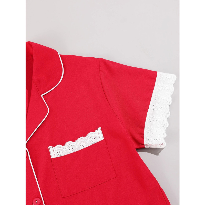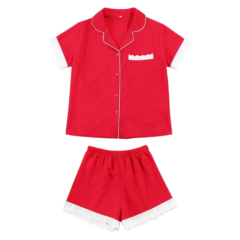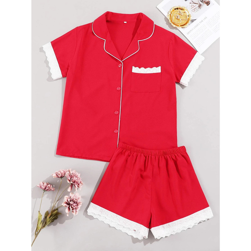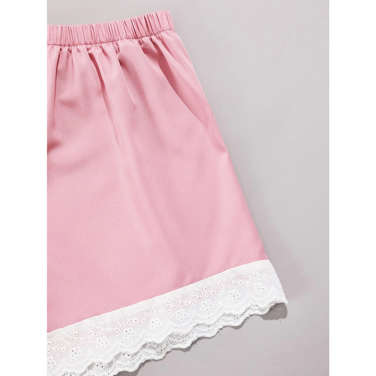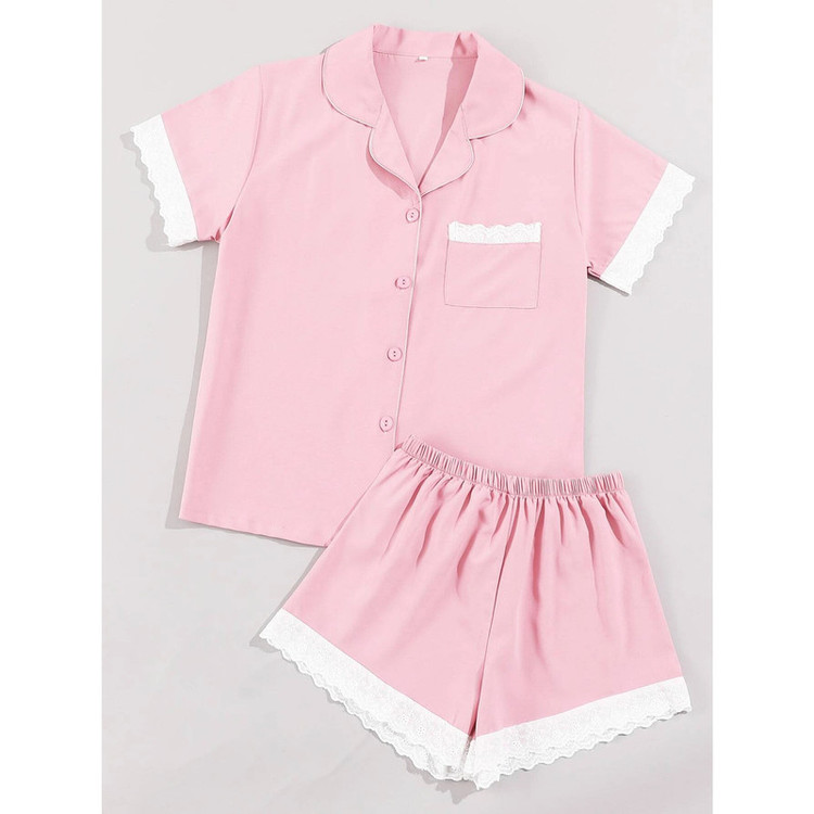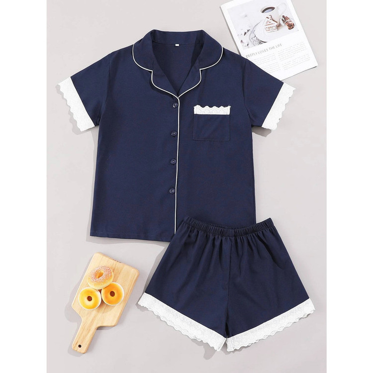 -ست لباس خواب زنانه شامل شومیز قیطون دوزی ساتن و شلوارک ساتن