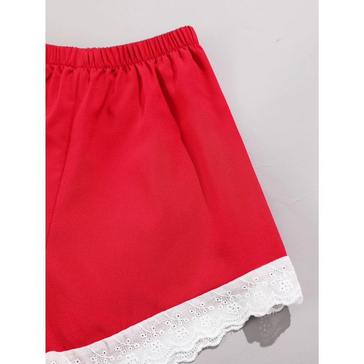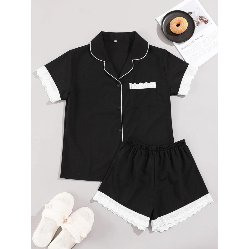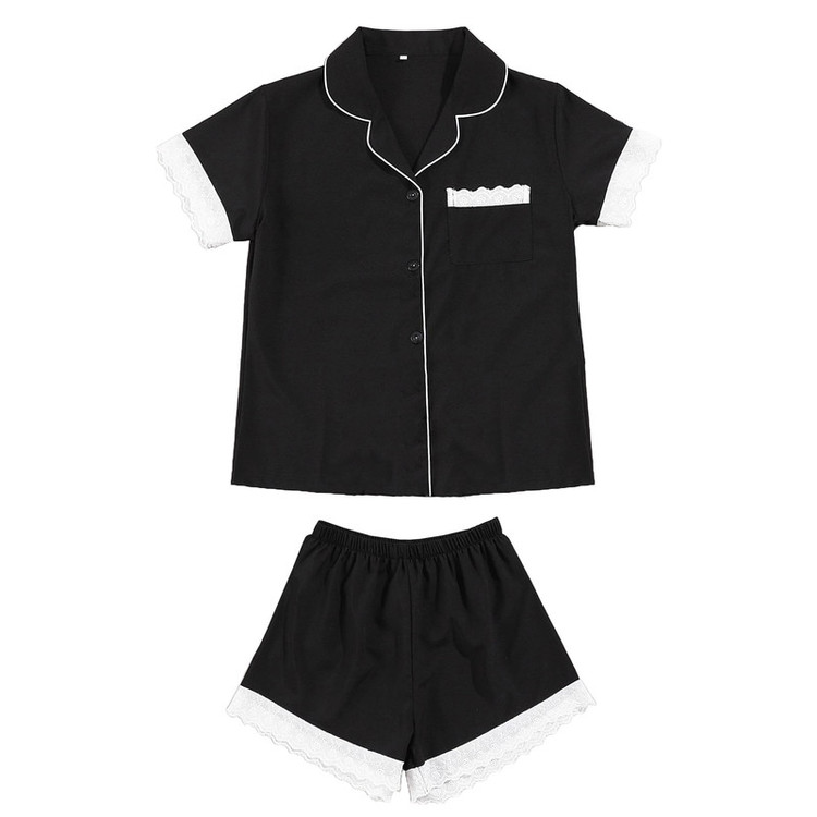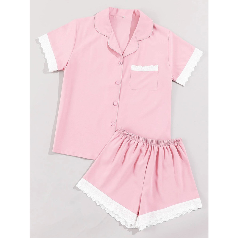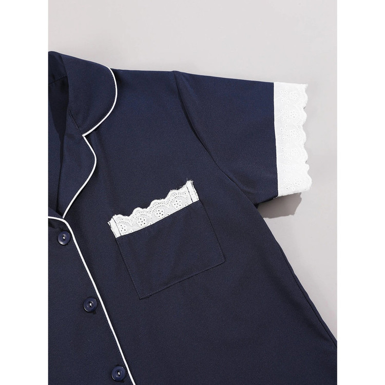-در قسمتهای آستین جیب و شلوارک با گیپور کره ای تزئیین شده