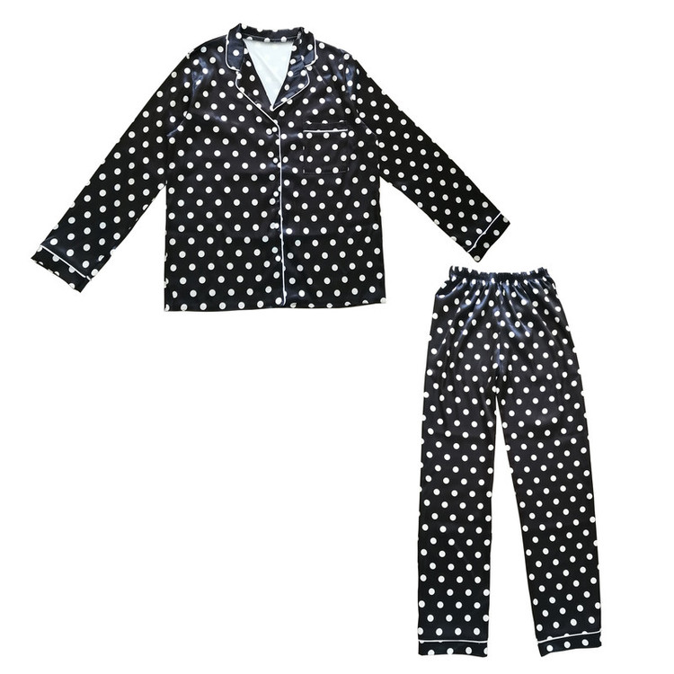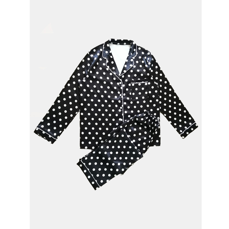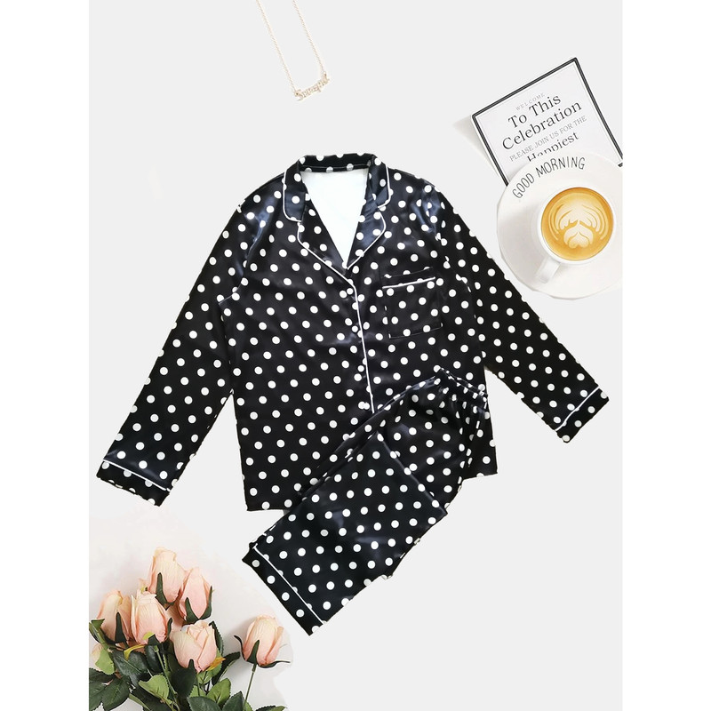 ست لباس خواب زنانه شامل شومیز قیطون دوزی ساتن طرح دار و شلوار قیطون دوزی ساتن طرح دار می باشد.
