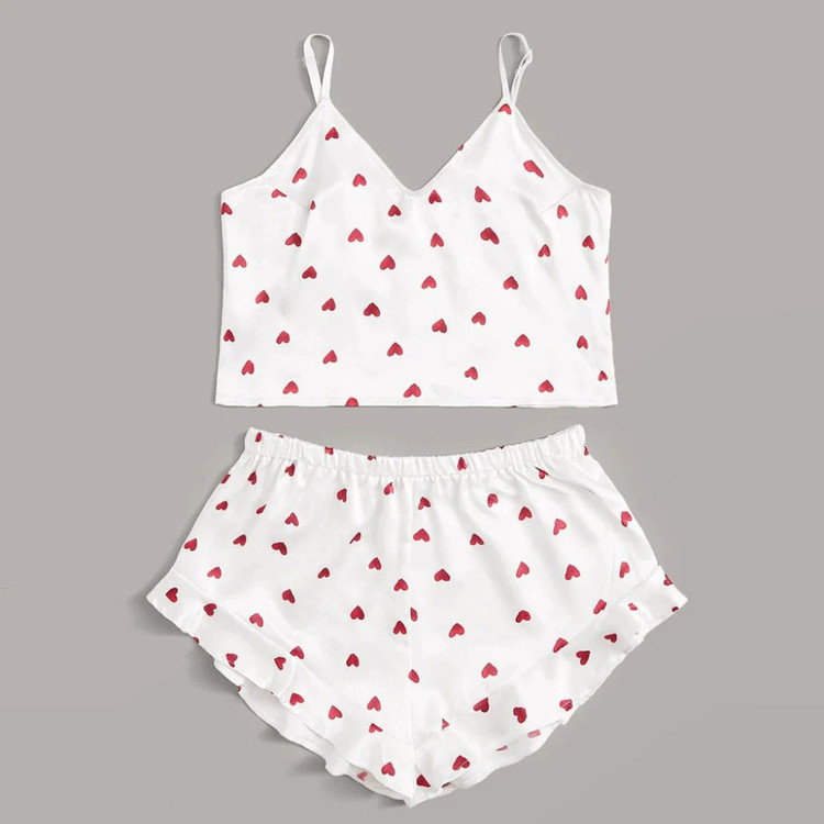 -ست لباس خواب زنانه شامل شلوارک ساتن و تاپ ساتن