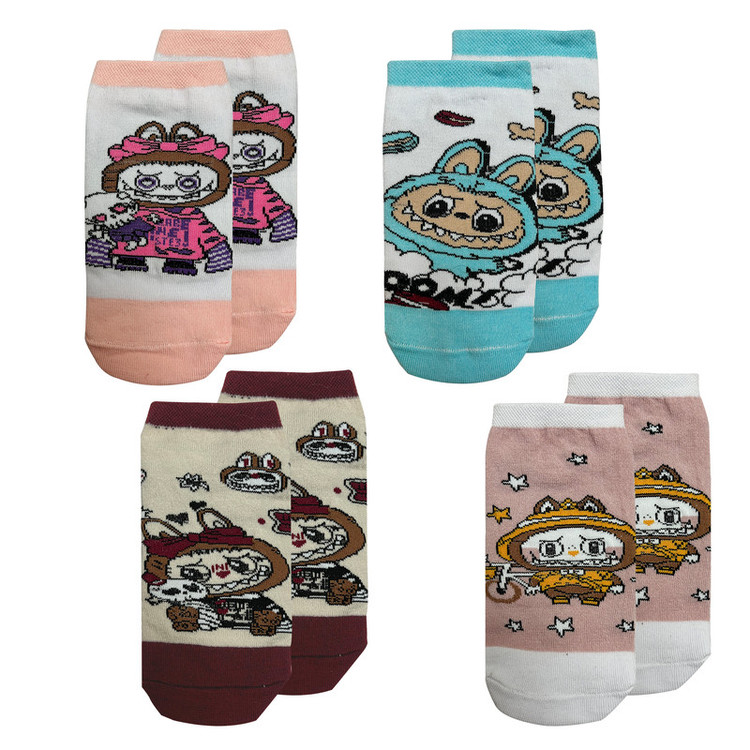 جوراب ساق کوتاه دخترانه تن پوش هنگامه مدل لبوبو مجموعه 4 عددی