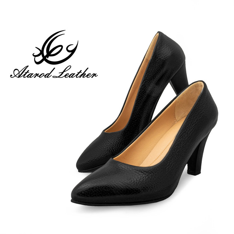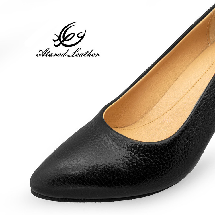 استفاده از چرم طبیعی گاوی در رویه و چرم نرم بزی در آستر داخلی طراحی لوکس با پاشنه ی 7.5 سانتیمتری برای رویدادهای خاص