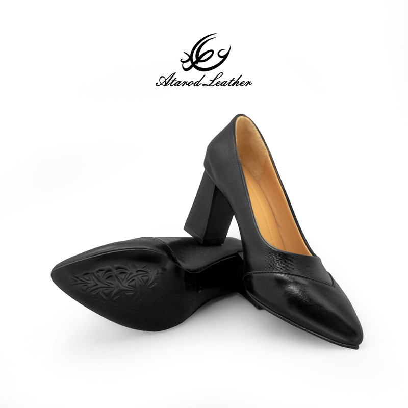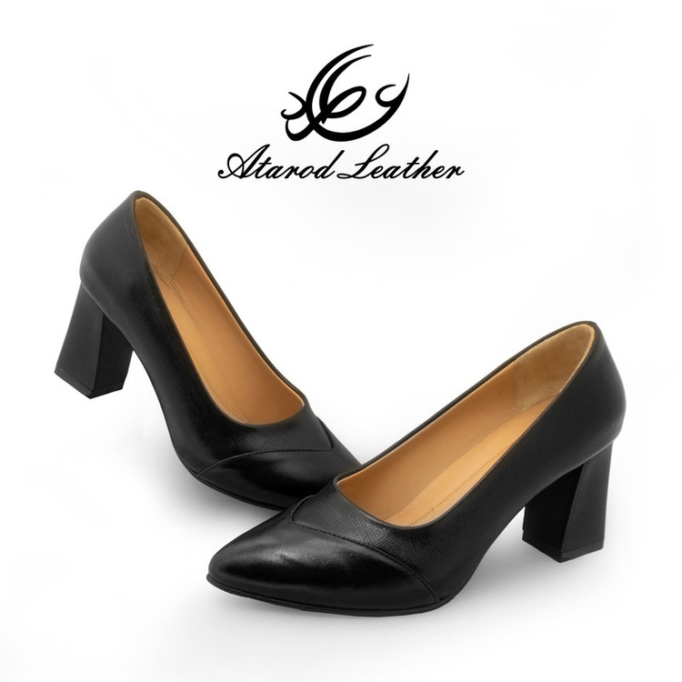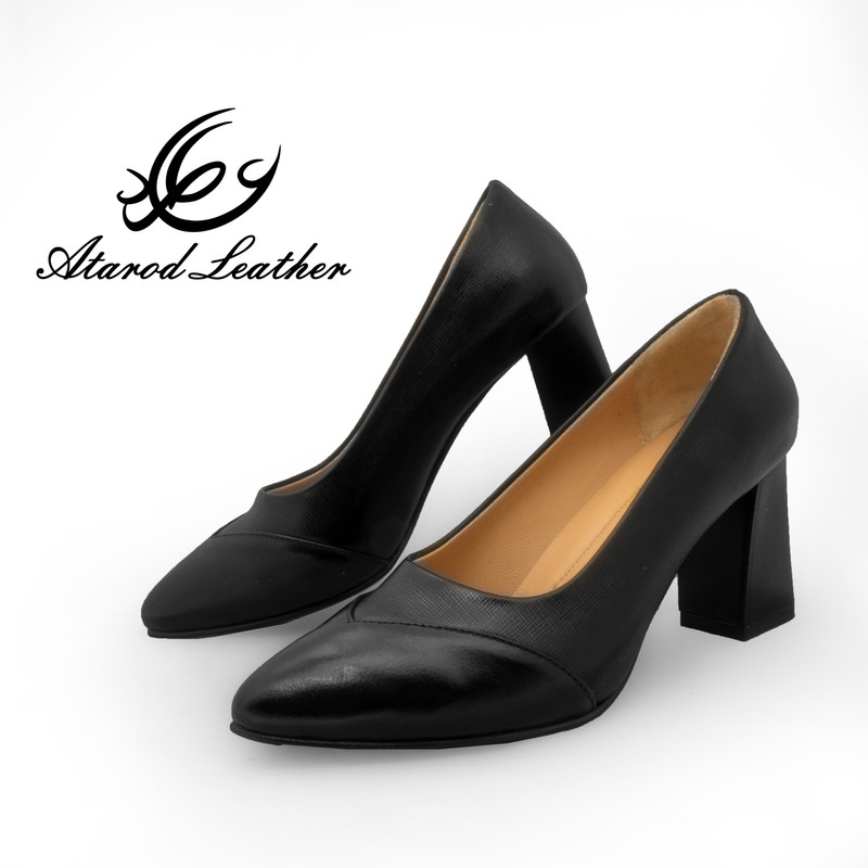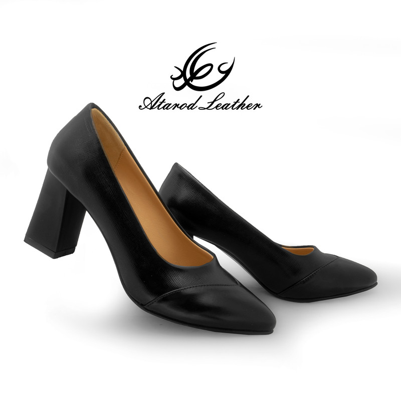 استفاده از چرم طبیعی گاوی در رویه و چرم طبیعی نرم بزی در آستر داخلی تنفس طبیعی پا به جهت تمام چرم طبیعی بودن بیرون و داخل کفش طراحی لوکس و ژورنالی با پاشنه ی 7.5 سانتیمتری پهن برای رویدادهای خاص