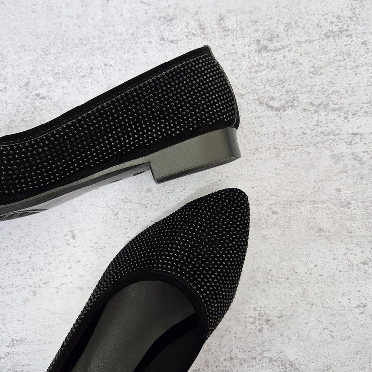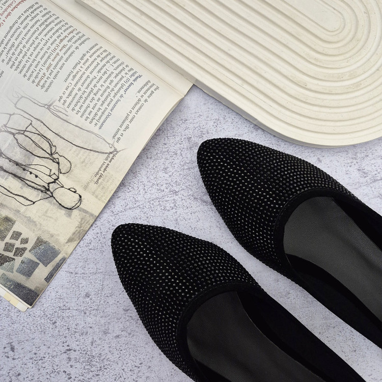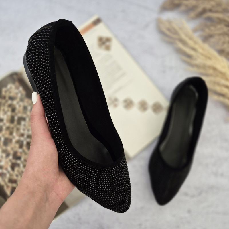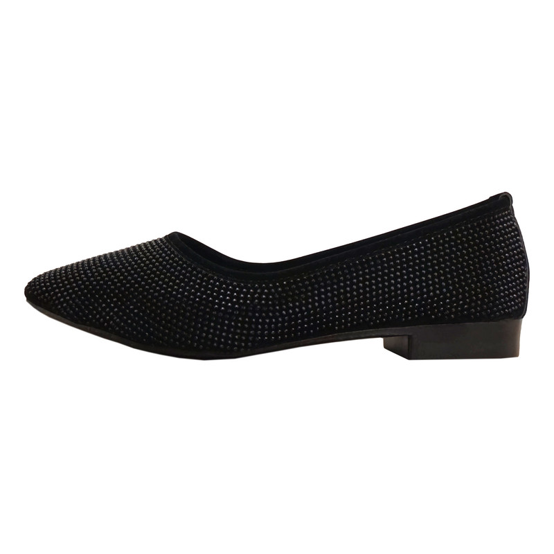 زنگ مشکی، سبک، جنس نرم، تزیین ریز نقش با نگین، دوخت ظریف و زیره مقاوم در برابر سایش. جهت انتخاب سایز مناسب، جدول سایز را بررسی فرمایید.