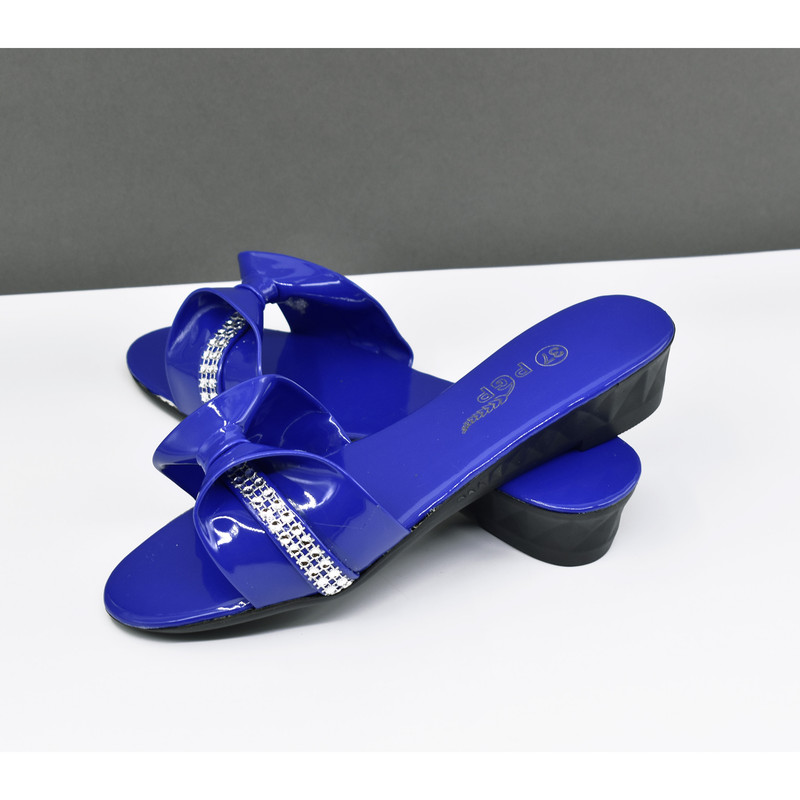 دستهبندی: دمپایی زنانهجنس زیره: پیویسینوع دمپایی زنانه: دمپایی پاشنه دارجنس: چرم مصنوعیسایز: آبی - 41