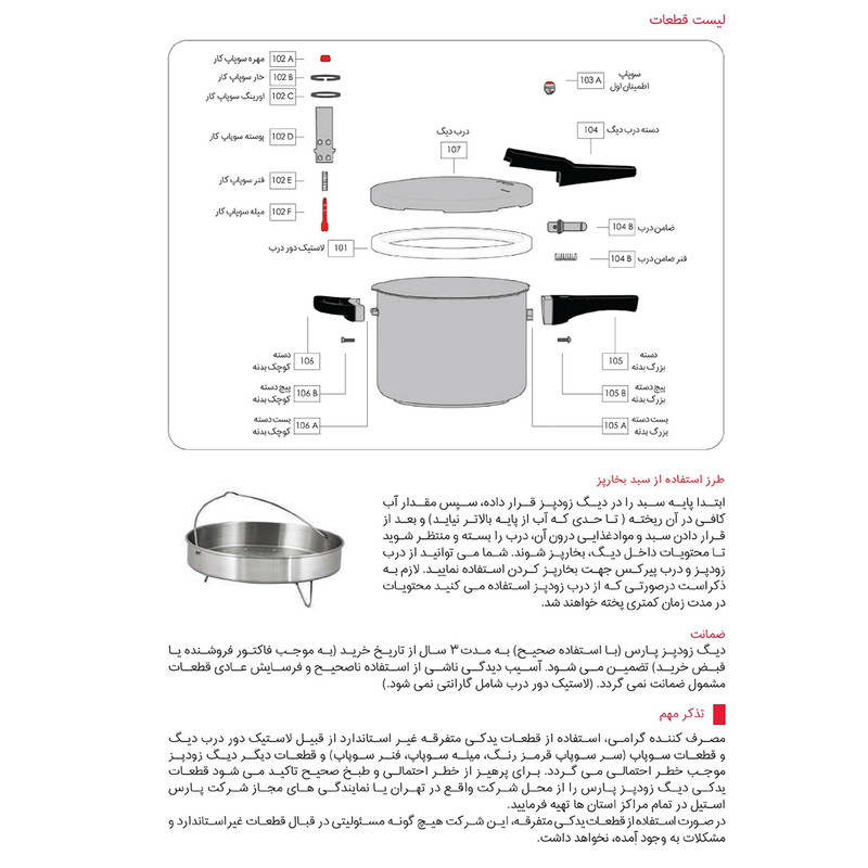 زودپز پارس استیل مدل کف سه لایه گنجایش 6 لیتر