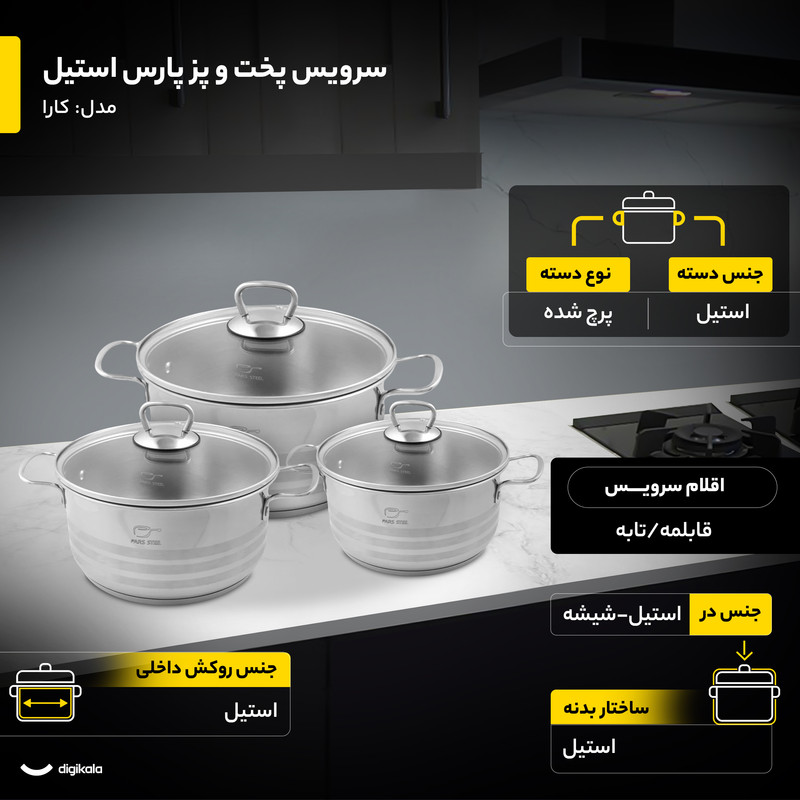 سرویس پخت و پز 7 پارچه پارس استیل مدل کارا