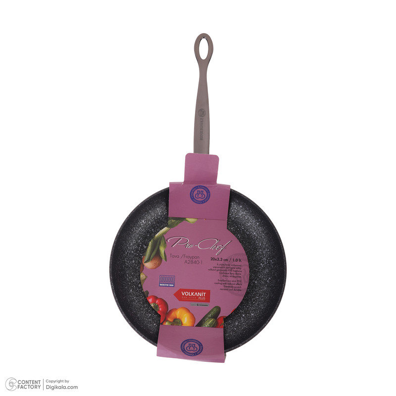 جنس روکش: پوشش گرانیتی PTFE با ظاهر ولکانیک - طراحی مدرن با پوشش گرانیتی مقاوم در برابر خراش - پوشش نچسب با مقاومت بالا در برابر خراش، تولید با فناوری دوستدار محیط زیست، فاقد مواد مضر مانند سرب و کادمیوم، قابلیت پخت با حرارت کم و مصرف روغن کمتر -
