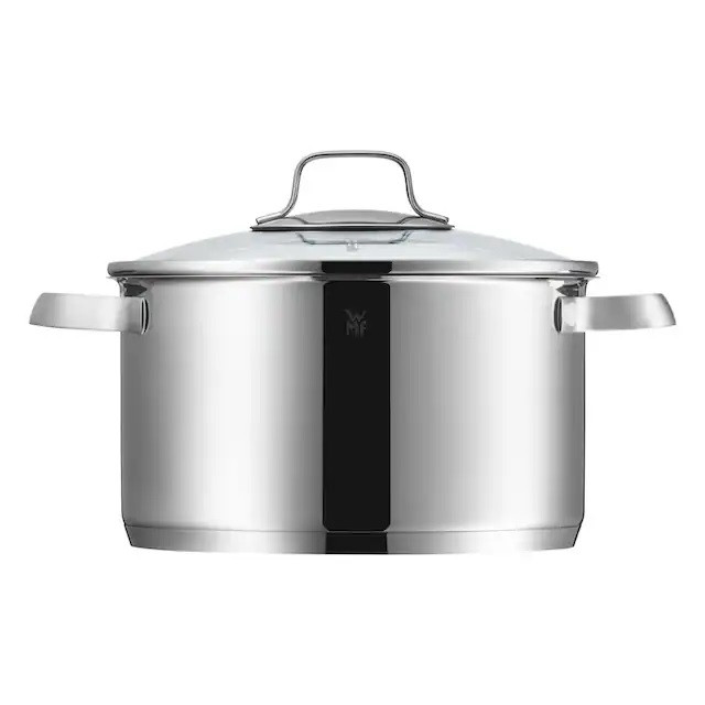 قابلمه سایز 24 سانت با گنجایش 5.7 لیتر، ساخته شده از استیل Cromargan استیل انحصاری محصولات دبلیو ام اف، قابلمه استفاده بر روی انواع اجاق: گاز، برقی، القایی، اینداکشن، قابلیت شستشو در ماشین ظرفشویی، کفه ساخته شده از سه لایه چدن، دارای درب شیشه ای