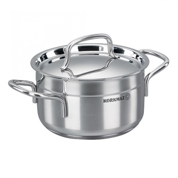ساخت ترکیه استیل 18/10 کروم نیکل درب استیل کفه دارای سه لایه چدن دسته استیل گنجایش 1.8 لیتر