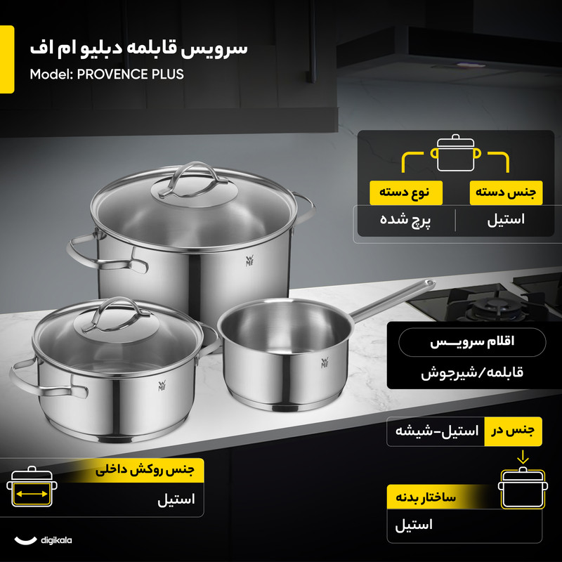 کفه سه لایه این ظروف، حرارت را به صورت بهینه و یکنواخت در تمام سطح پخش میکند که نتیجه آن پختی بینقص و مصرف انرژی کمتر است. این مجموعه ۹ پارچه ساخت کشور آلمان، شامل سه قابلمه در سایزهای کاربردی و یک شیرجوش است که نیازهای اصلی یک آشپزخانه مدرن را به خوبی پوشش میدهد. دستههای استیل این سرویس به صورت پرچ شده به بدنه متصل شدهاند تا ایمنی و استحکام حداکثری را هنگام جابجایی فراهم آورند. این ظروف برای استفاده روی اجاق گاز مناسب هستند. در نهایت، سرویس قابلمه WMF مدل PROVENCE PLUS برای کسانی که به دنبال بهترین کیفیت مواد اولیه و دوامی ماندگار هستند، یک انتخاب حرفهای است.