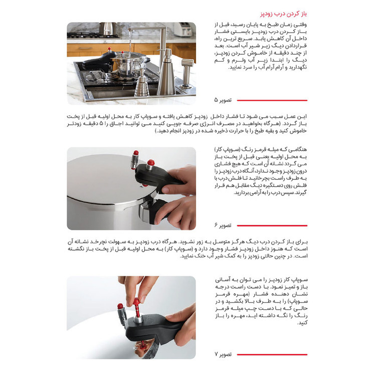 - استیل ضد خط و خش - کف سه لایه جهت جلوگیری از چسبندگی و سوختن غذا - سه سیستم تخلیه فشار جهت تامین حداکثر ایمنی - دارای نشان روی درب بمنظور آسان باز و بسته نمودن درب - قابل شستشو در ماشین ظرفشویی