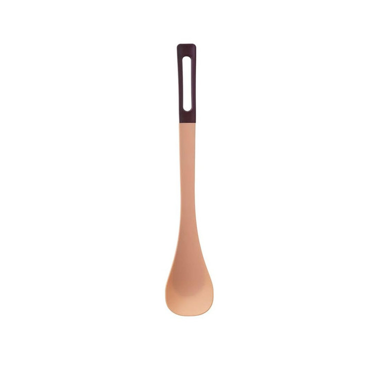 دسته: پلیآمید تقویتشده / مقاومت گرمایی: تا 220 درجهی سانتیگراد / لبه نرم سیلیکونی که به خوبی کف و اطراف قابلمه را خراش نمیدهد