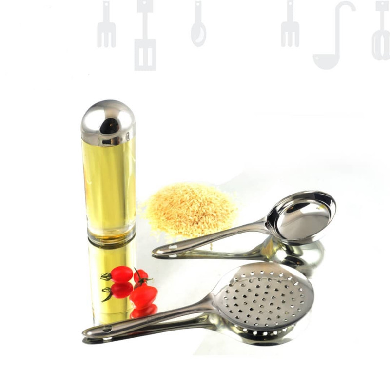 کفگیر و ملاقه استیل دسته کوتاه هندی ساخت کشور هندوستان از استیل ضد زنگ و نگیر به اهنربا و ضخیم میباشد . بسته شامل 2عددکفگیر و2عددملاقه کوتاه میباشدطول کلی 22 سانتیمتر وطول دسته 12 سانتیمتروقطر سر تقریبا 9 سانتیمتر میباشد بسیار زیبا و براق و محکم میباشد که یک محصول پر کار برد و پر طرفدار در اشپزخانه میباشدمانند ملاقه سوپ وماست یا کفگیر سرو برنج. به دلیل دسته های کوتاه انها فضای کمی اشغال میکند