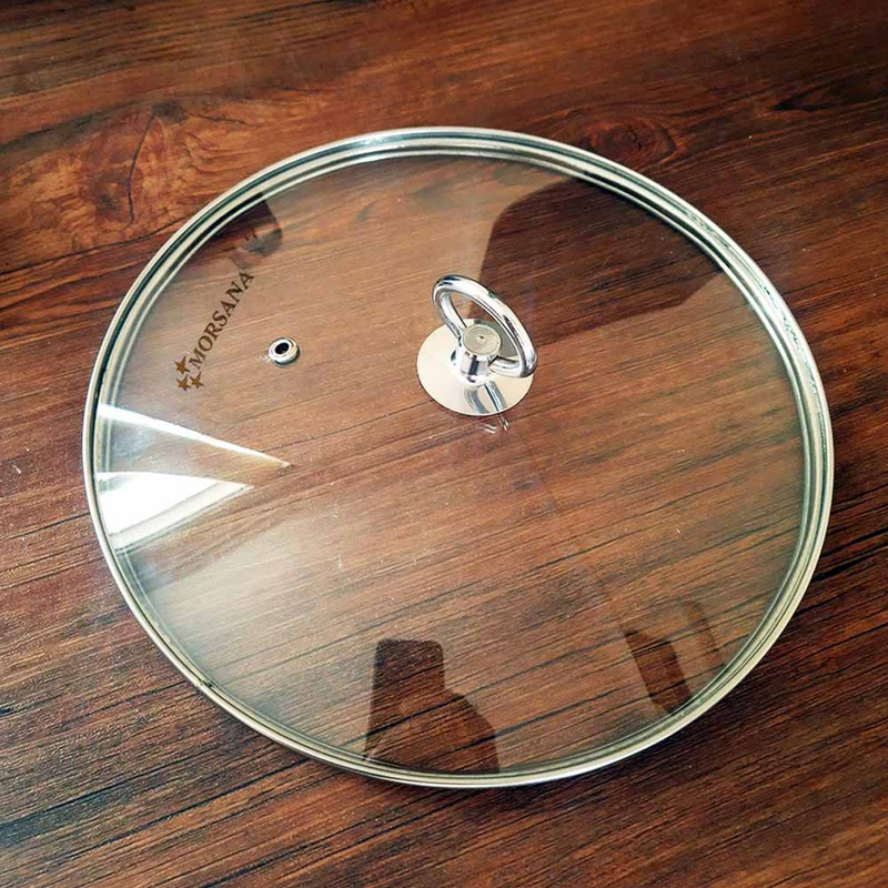 مجموعه 3 عددی درب پیرکس مرسانا، در سایزهای 28 سانتیمتر، 22 سانتیمتر و 18 سانتیمتر از جنس پیرکس بوده و دارای دستگیرهء فلزی به رنگ نقراه ای میباشد که برای انواع ماهیتابه و قابلمه در سایزهای مذکور قابل استفاده میباشد.