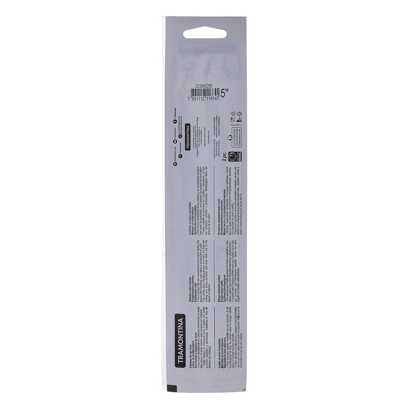 چاقوی ترامونتینا مدل Ipanema داری دو عدد چاقو با تیغه اره ای تیز و مقاوم از جنس استیل ضدزنگ و دسته از جنس پلاستیک با کیفیت و طراحی ارگونومیک می باشد. به دلیل طراحی اره ای شکل تیغه، برش میوه و سبزیجات حتی انواع نرم و آبدار آن به راحتی و سرعت انجام می گیرد. این چاقو مناسب برش انواع استیک و گوشت پخته نیز می باشد. این محصول ساخت کشور برزیل است.