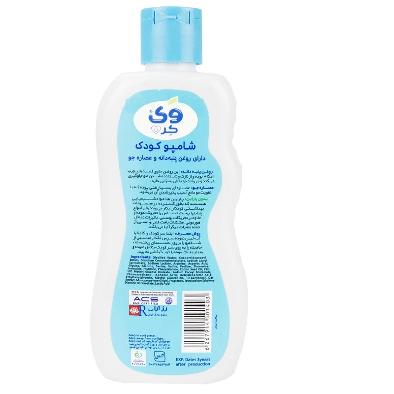 شامپو بچه وی کر مدل روغن پنبه دانه و عصاره جو حجم 200 میلی لیتر بسته 4 عددی