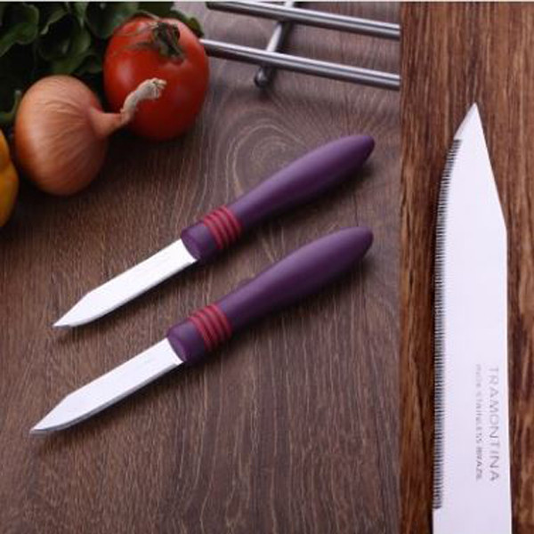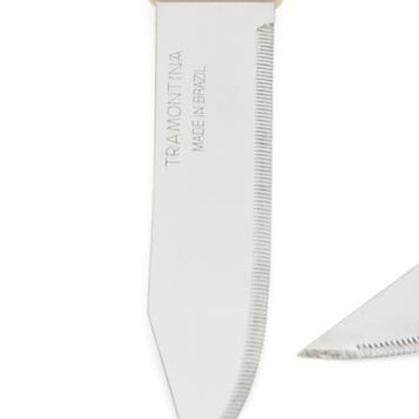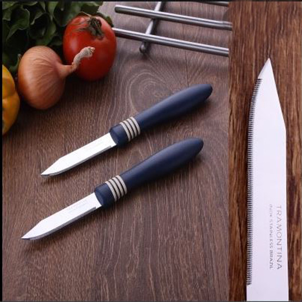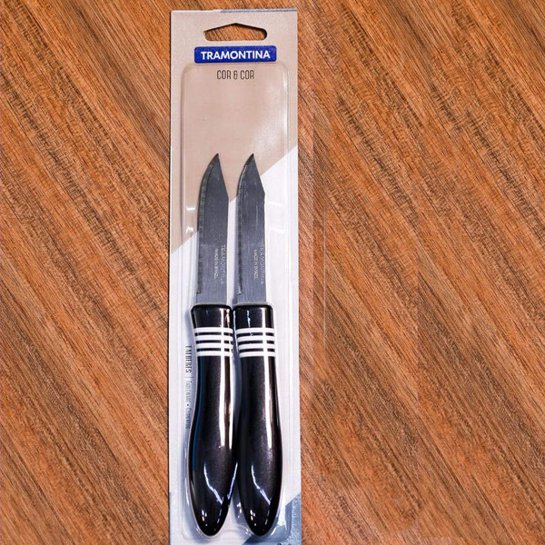 چاقو اشپزخانه ترامونتینا مدل COR&COR ساخت برزیل یکی از قدیمی ترین چاقو های که در ایران مصرف دارد ، کمپانی ترامونتینا تولید انواع چاقو و لوازم آشپزخانه در دنیا ست ، چرا که این مدل با داشتن تیغه استیل ضد زنگ و همچنین دستگیره های از جنس ABS مدلی بسیار کارآمد برای تمام مصارف خانگی بوده که شما را از داشتن یک چاقوی تیز و و مقاوم بی نیاز خواهد نمود. این چاقو ها به صورت جفت با بسته بندی عرضه شده . لازم به ذکر است این مدل ساخت کشور برزیل بوده و علامت برند MADE IN BRAZIL و همچنین TRAMONTINA روی تیغه آن درج شده است که می تواند خیال شما را از داشتن یک چاقوی بسیار با کیفیت و اصل ، همچنین ماندگار تامین نماید و به هیچ عنوان شکسته و یا از تیغه جدا نمی شود .تیغه این مدل کارد به صورت اره ای به طول 7.5سانت است و برش را آسان تر میکند . کیفیت تیغه این کارد به بیش از 20 سال عمر مفید دارند. تیغه های اره ای این چاقو بسیار تیز و برنده بوده .هنگام استفاده حتما مراقب دستان خود و دیگران باشید. لازم به ذکر است این مدل COR&COR پر فروش ترین محصول ترامونتینا ست که اریزان عاملیت فروش محصولات ترامونتینا در ایران است .