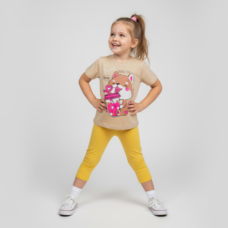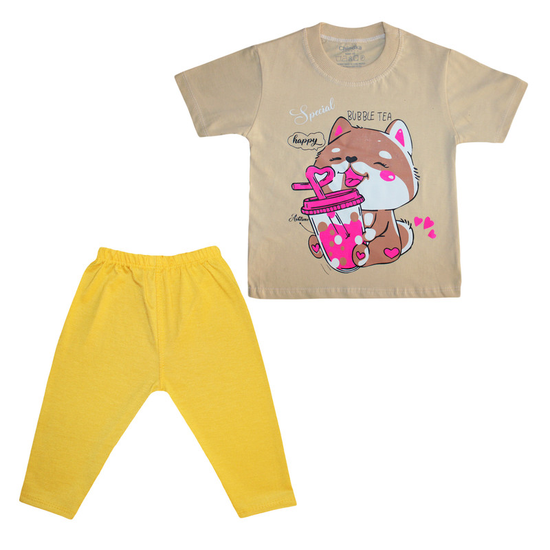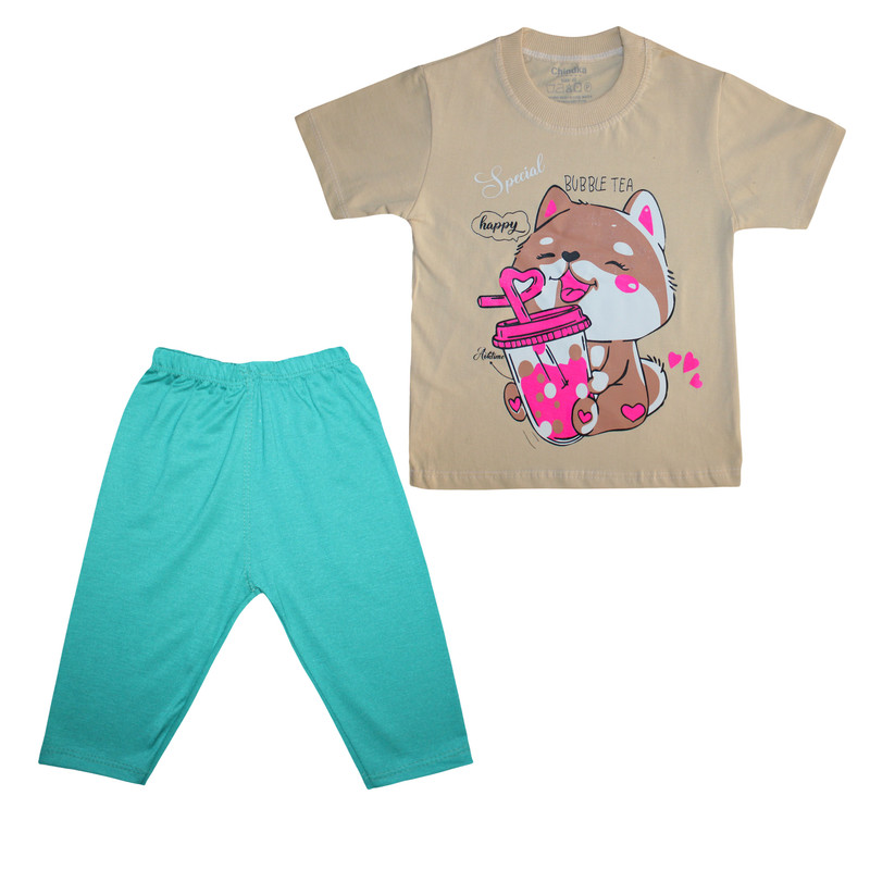 ست تی شرت آستین کوتاه و شلوارک راحتی دخترانه چیندکا مدل گربه کد 101