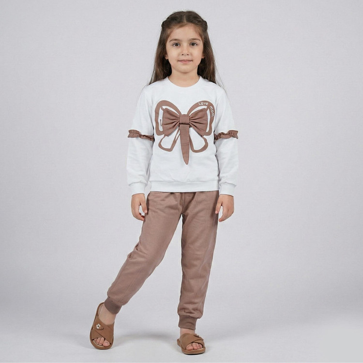 ست سویشرت و شلوار دخترانه مدل دورس طرح پاپیون کد 1001