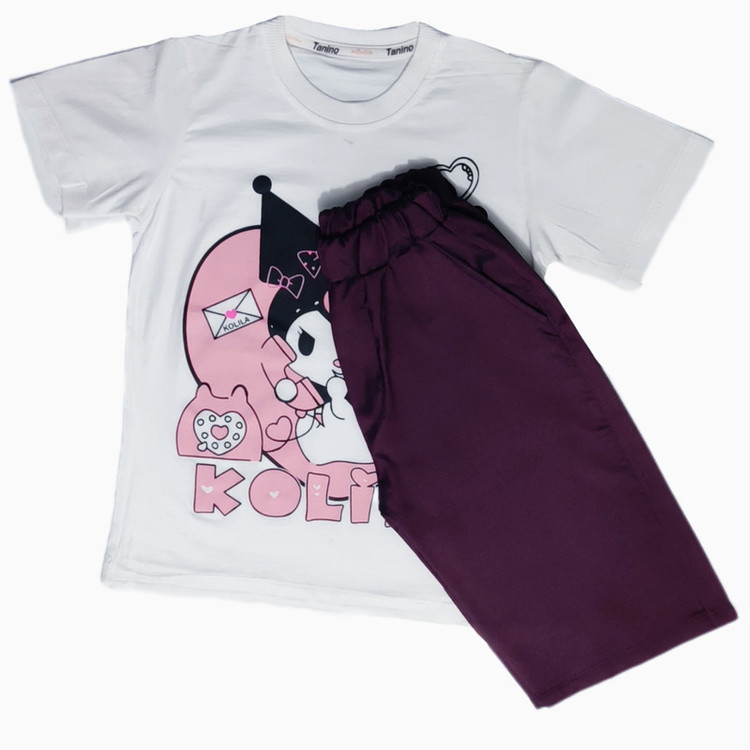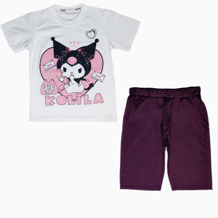 ست تی‌شرت آستین کوتاه و شلوارک دخترانه مدل کرومی کد M02
