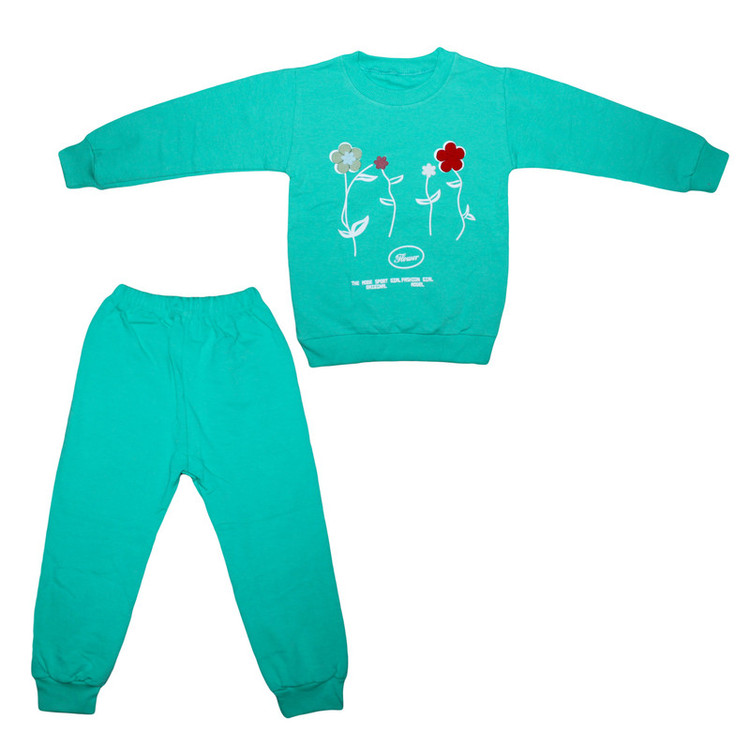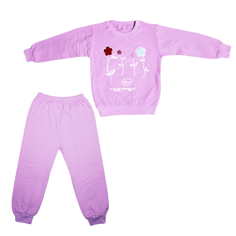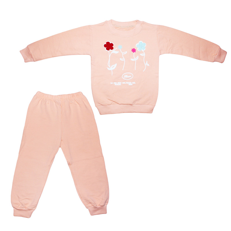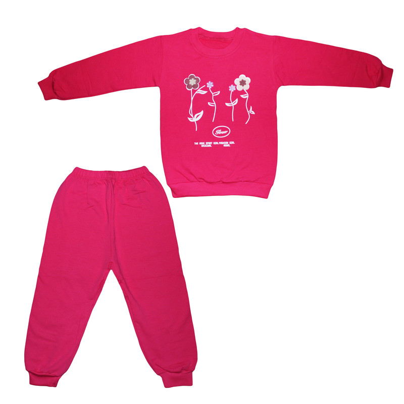 ست سویشرت و شلوار راحتی دخترانه مدل دورس طرح گل برجسته کد 1001