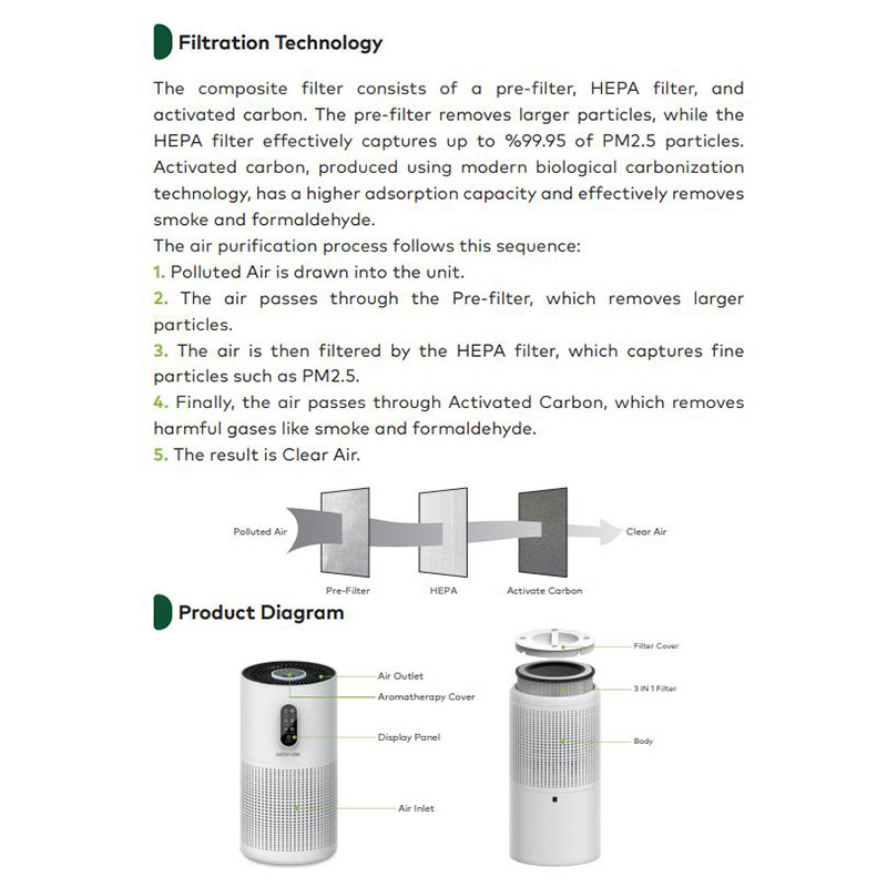 دارای فیلتر سه گانه اعم از فیلتر هپا | وزن و ابعاد مناسب | طراحی مدرن و زیبا | حجم هوای خروجی بالا | پوشش دهی مساحت حدود 22 متر مربع | اتصال مستقیم به برق | قابلیت تنظیم فن در سه حالت