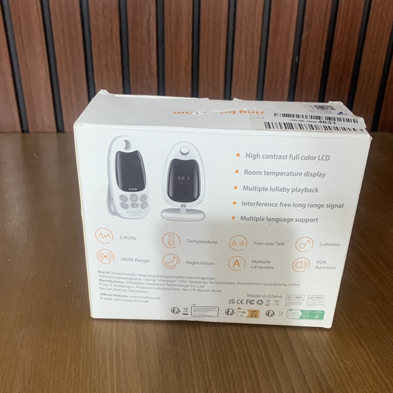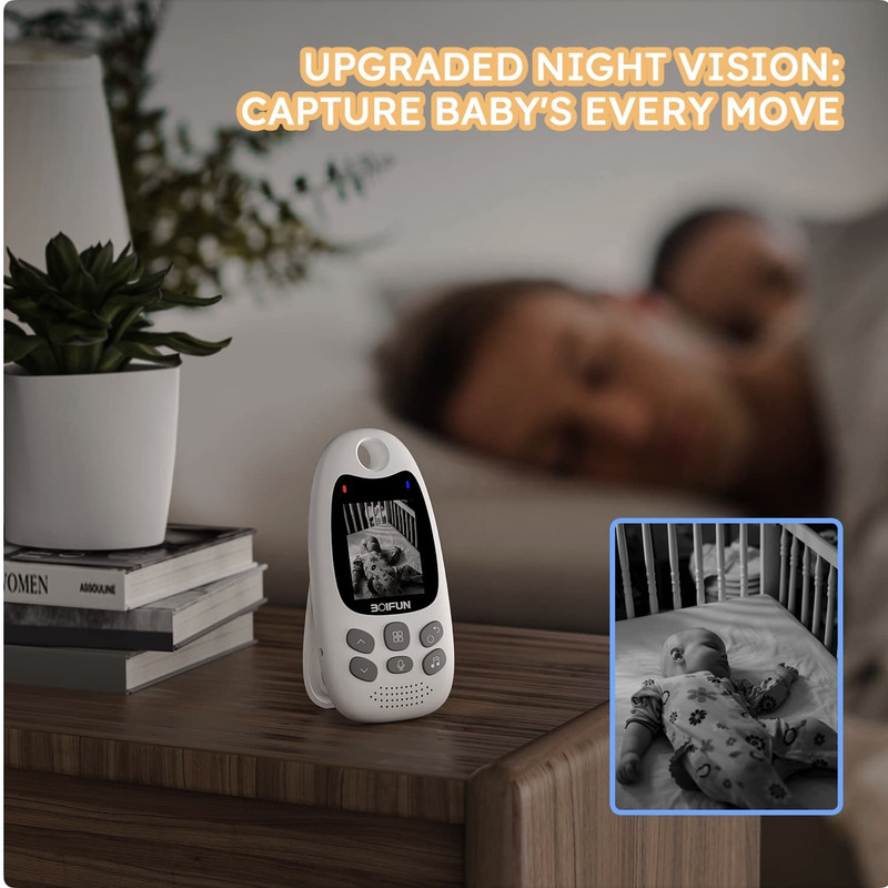 دوربین و مانیتور اتاق کودک بویفون دارای مانیتور ٢ اینچ می باشد. دید در شب، لالایی، تماس دو طرفه دارد.برد ٢۶٠ متر دارد.دارای سنسور حرارتی می باشد. آلارم گریه کودک دارد.سفارش ساخت کشور انگلیس است.