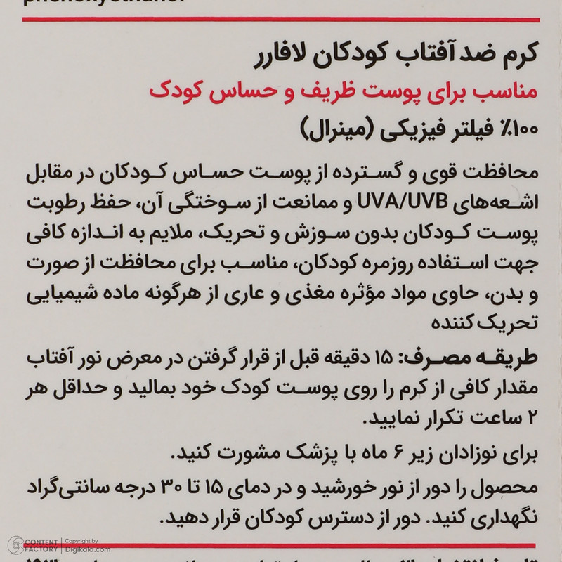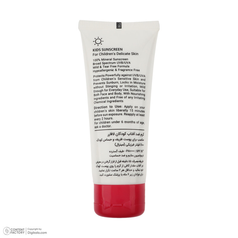 مناسب برای پوست ظریف و حساس کودک 100% فیلتر فیزیکی (مینرال) SPF30+ PA+++ فرمولاسیون ملایم و ضد حساسیت