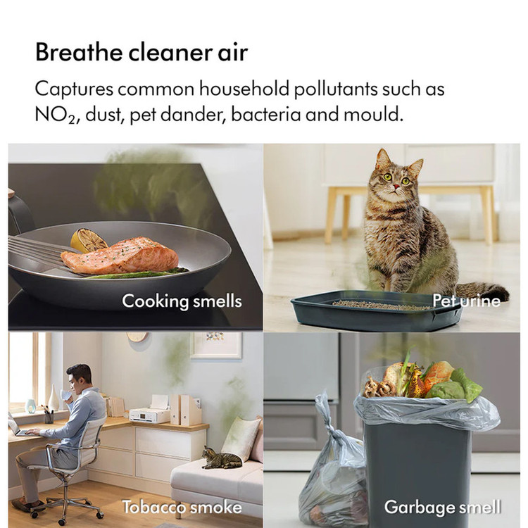 فیلتر HEPA H۱۳ + فیلتر کربن فعال + فیلتر کاتالیزوری برای تخریب فرمالدهید با حسگر حالتجامد و فیلتر کاتالیزوری دائمی(برای افراد دارای آلرژی,حساسیت های فصلی و آسم) / جذب 50 درصد NO₂ ی بیشتر نسبت به مدل های قبلی