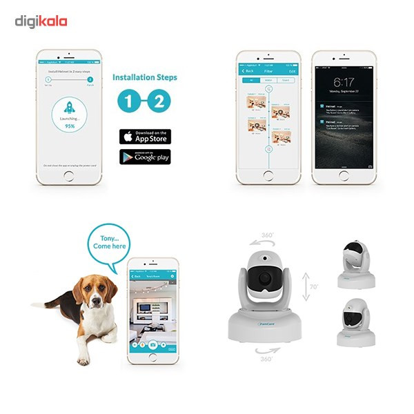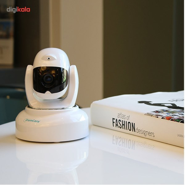 محصولی که میبینیم دوربین کنترل اتاق کودک برند « آی فیم کر» مدل (Helmet) است. این محصول از نوع تصویری بوده و دارای سنسور تشخیص حرکت و صدا است. دوربین کنترل اتاق کودک، قابلیت مشاهده زنده تصاویر از هر مکان و در هر زمان را دارد. این دوربین با کیفیت تصویر Full HD، امکان ارتباط دو طرفه دارد. علاوه بر این این محصول امکان دید در شب را دارد. از دیگر قابلیتهای این محصول میتوان به سنسور تشخیص کیفیت هوا و پخش لیزر جهت کنترل حیوانات خانگی اشاره کرد. همچنین این دوربین قابلیت حرکت به سمت بالا و پایین و همچنین چرخش 360 را دارد. این مدل از دوربین کنترل اتاق کودک برند « آی فیم کر» دارای آداپتور و بازوی نصب دیواری بوده، به این ترتیب میتوانید آن را روی دیوار نصب کنید.