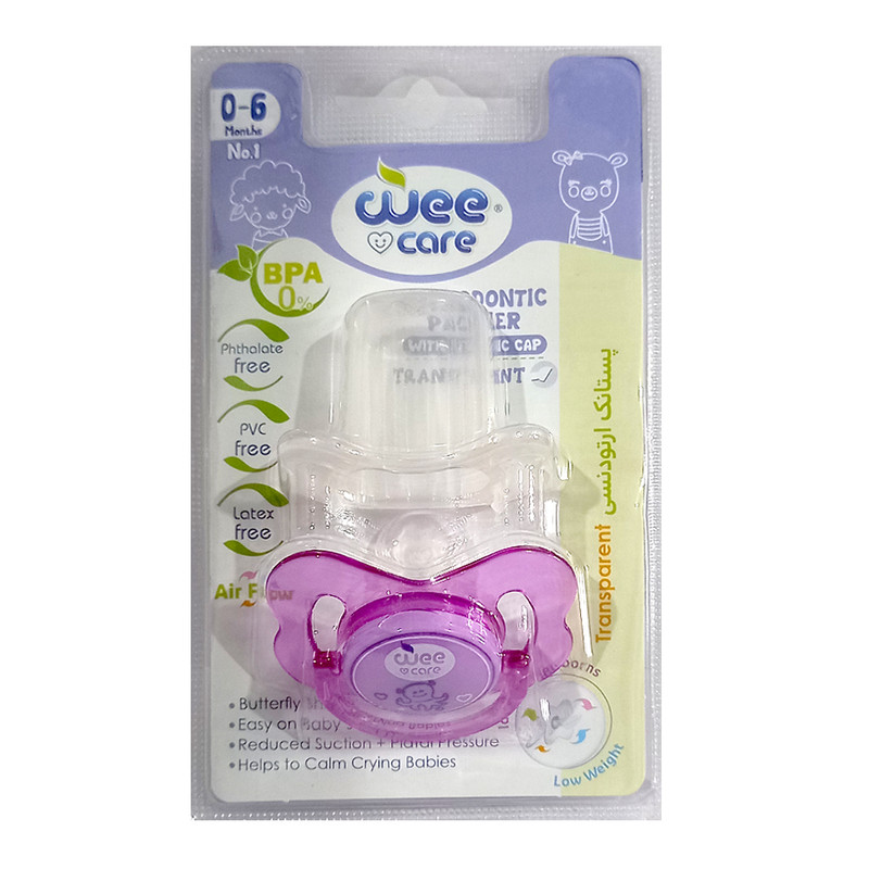 پستانک ارتودنسی وی کر از نرم ترین مواد سیلیکونی با گرید غذایی ساخته شده است و شکل بدنه و نوک پستانک به گونه ای طراحی شده است که بطور کامل در دهان کودک قرار گیرد و به همین دلیل کمترین تاثیر را بر روی دندان های طبیعی کودک می گذارد. دسته موجود بر روی پستانک این اجازه را به شما می دهد که به راحتی آن را از دهان کودک خارج کنید، همچنین درپوش محافظ جهت جلوگیری از آلودگی نوک پستانک، هنگامی که ار آن استفاده نمی کنید به کار برده می شود.
