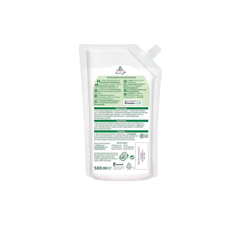 مایع استریل و ضد عفونی کننده ظروف کودک آلمانی Frosch را حتی پس از یک بار استفاده یار جدانشدنی ظروف کودک خود خواهید کرد چرا که اهمیت استفاده از آن مهم تر آن چیزی است که فکر می کنید. کودکان همیشه بخصوص هنگام رویش اولین دندانشان شروع به مکیدن،گاز گرفتن و در کل در دهان بردن اشیا پیرامون خود می کنند. در این بین اسباب بازی هایشان بیشترین جذابیت را برای آن ها دارد. تمامی محصولات کودک شما که با بزاق حساس وی در تماس است می تواند یک زنگ خطرهم باشد ، شیشه شیرهای او،پستانک ها، مسواک او، قاشقش ،دندان گیر وی و…باید هر چند وقت یک بار ضدعفونی شود تا پیشگیری لازم در برابرانواع بیماری ها صورت پذیرد. مایع استریل و ضد عفونی کننده ظروف کودک آلمانی Frosch با فرمولی خاص و بدون عطر و مواد نگهدارنده و بدون آسیب زدن به ظروف، آن ها را کاملا ضدعفونی و تمیز می کند. اشیا و ظروف مربوط به کودک را تحت هیچ شرایطی در مجاورت شوینده های قوی قرار ندهید زیرا ضررهای جبران ناپذیری را در پی خواهد داشت. مایع استریل و ضد عفونی کننده ظروف کودک آلمانی Frosch حتی برای بزرگسالانی که دچار آلرژی و حساسیت هستند هم مناسب می باشد.این محصول ته مانده غذای ظروف کودک مثل شیر،خمیر کودک و… را به آسانی پاک کرده و خاطری آسوده را برای شما رقم می زند. این محصول دارای تاییدیه های بهداشت جهانی است و توسط متخصصین تست شده است.